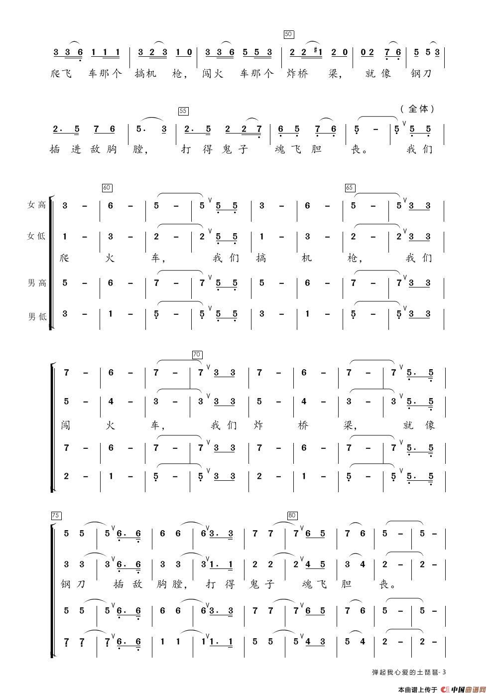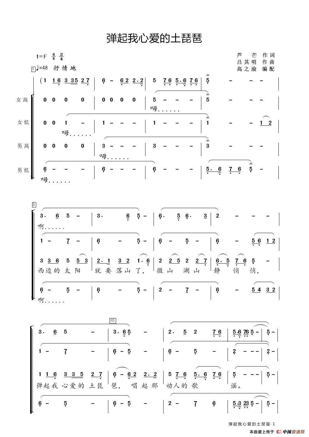 关于《 弹起我心爱的土琵琶》曲谱的评论