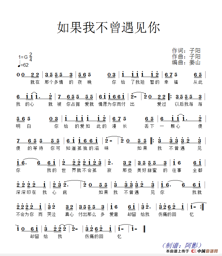 关于《如果我不曾遇见你》曲谱的评论