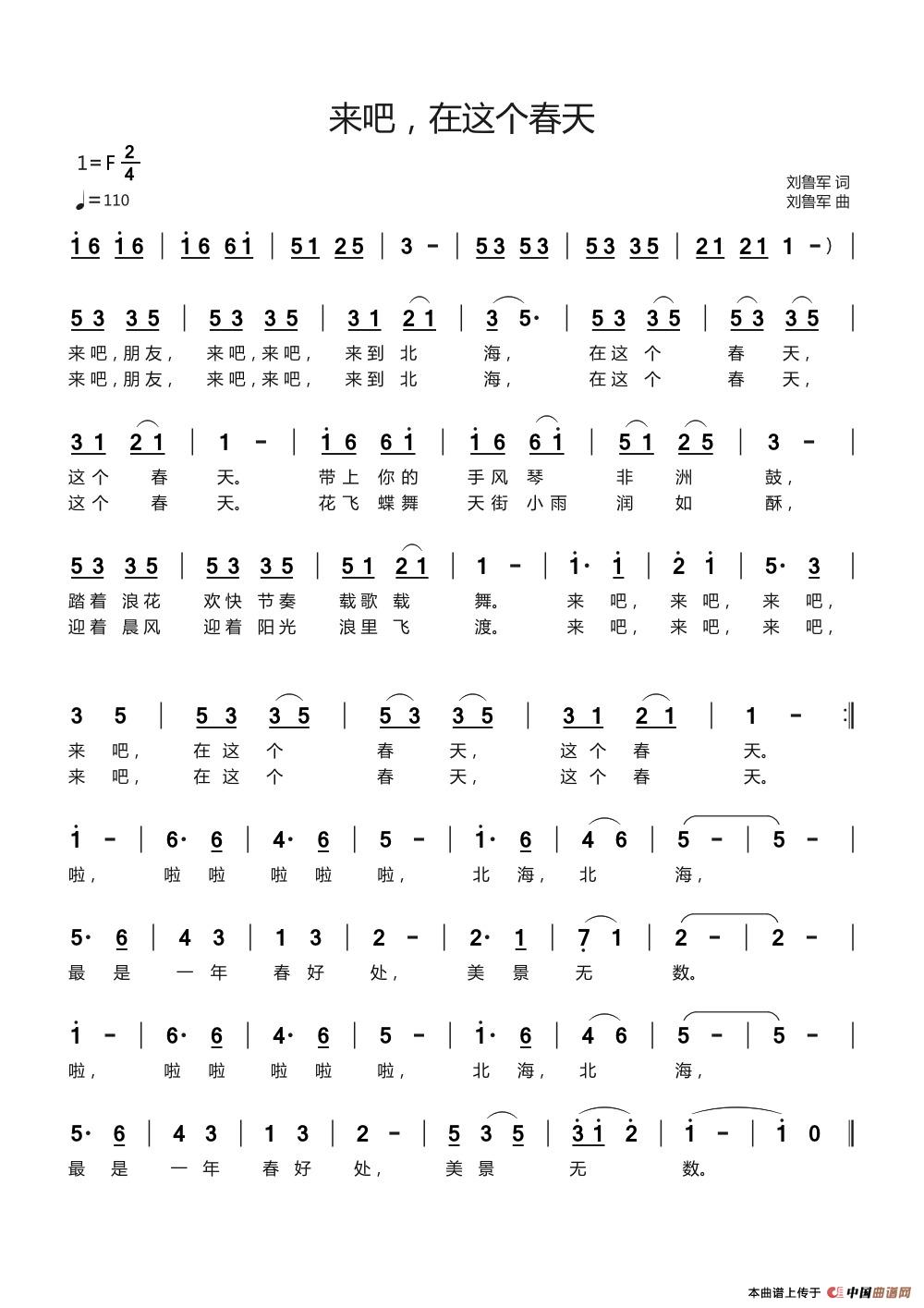 关于《来吧,在这个春天》曲谱的评论