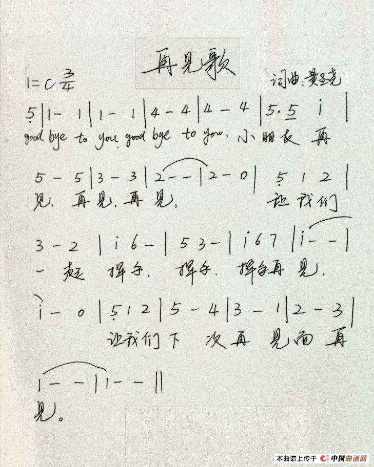 关于《再见歌》曲谱的评论