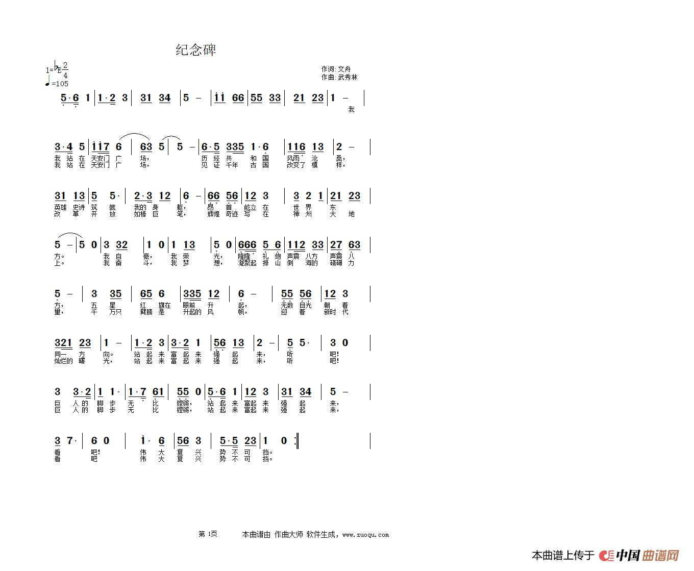 关于《纪念碑》曲谱的评论