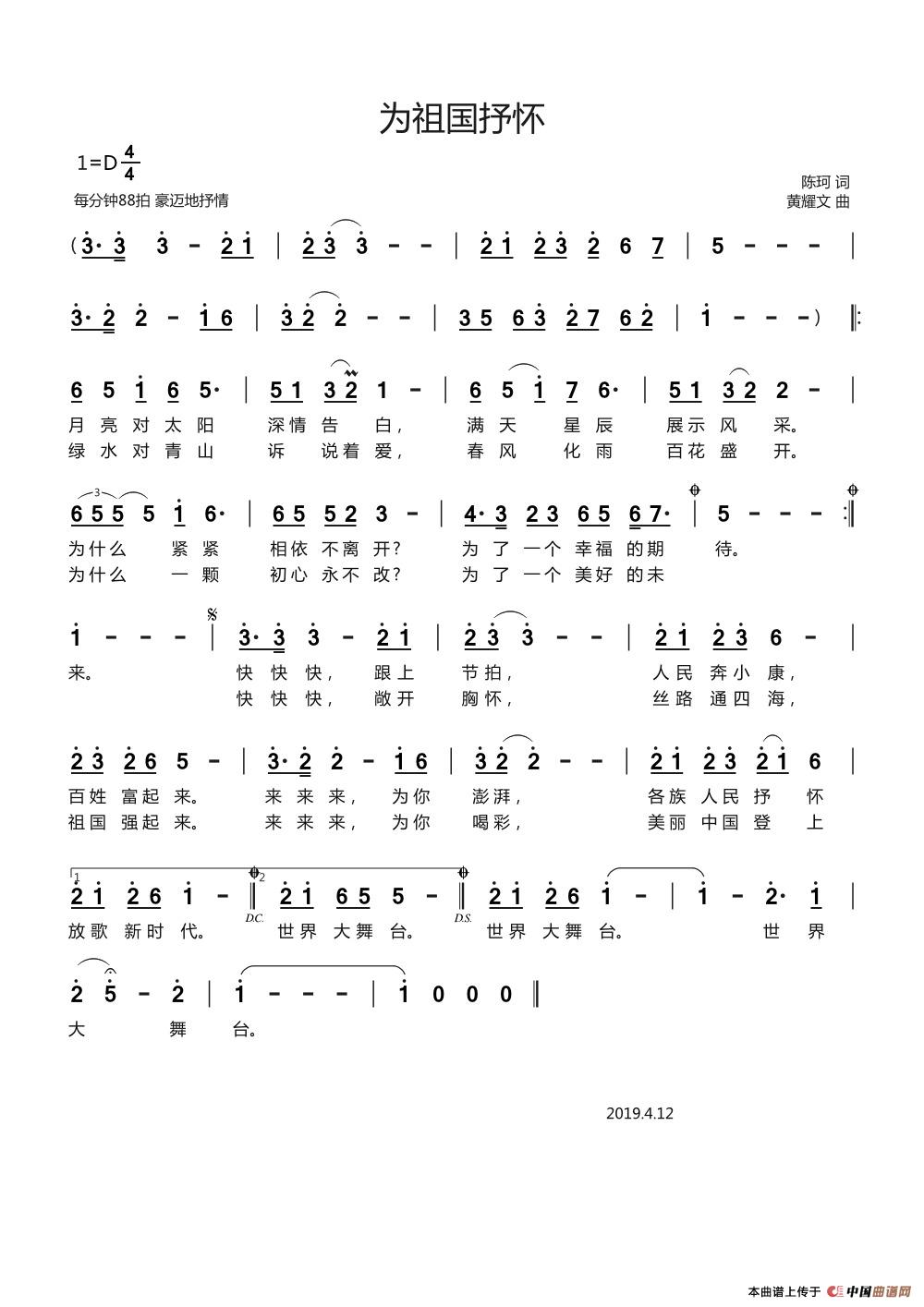 关于《为祖国抒怀》曲谱的评论