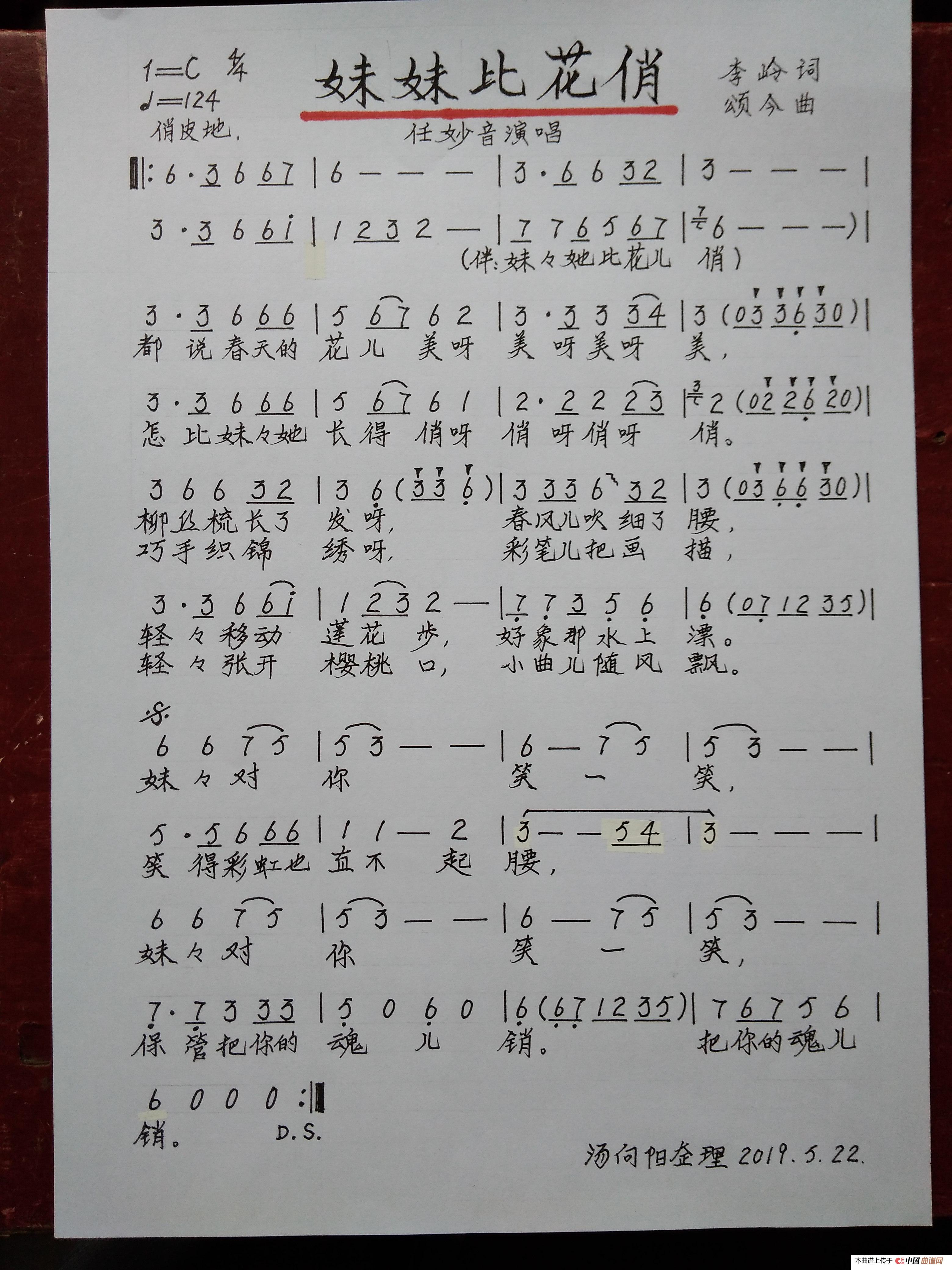 提示:在曲谱图片上单击右键,选择“图片另存为...”即可将曲谱保存到您的电脑中,打印时候可将图片插入到WORD中,调整合适大小打印即可。