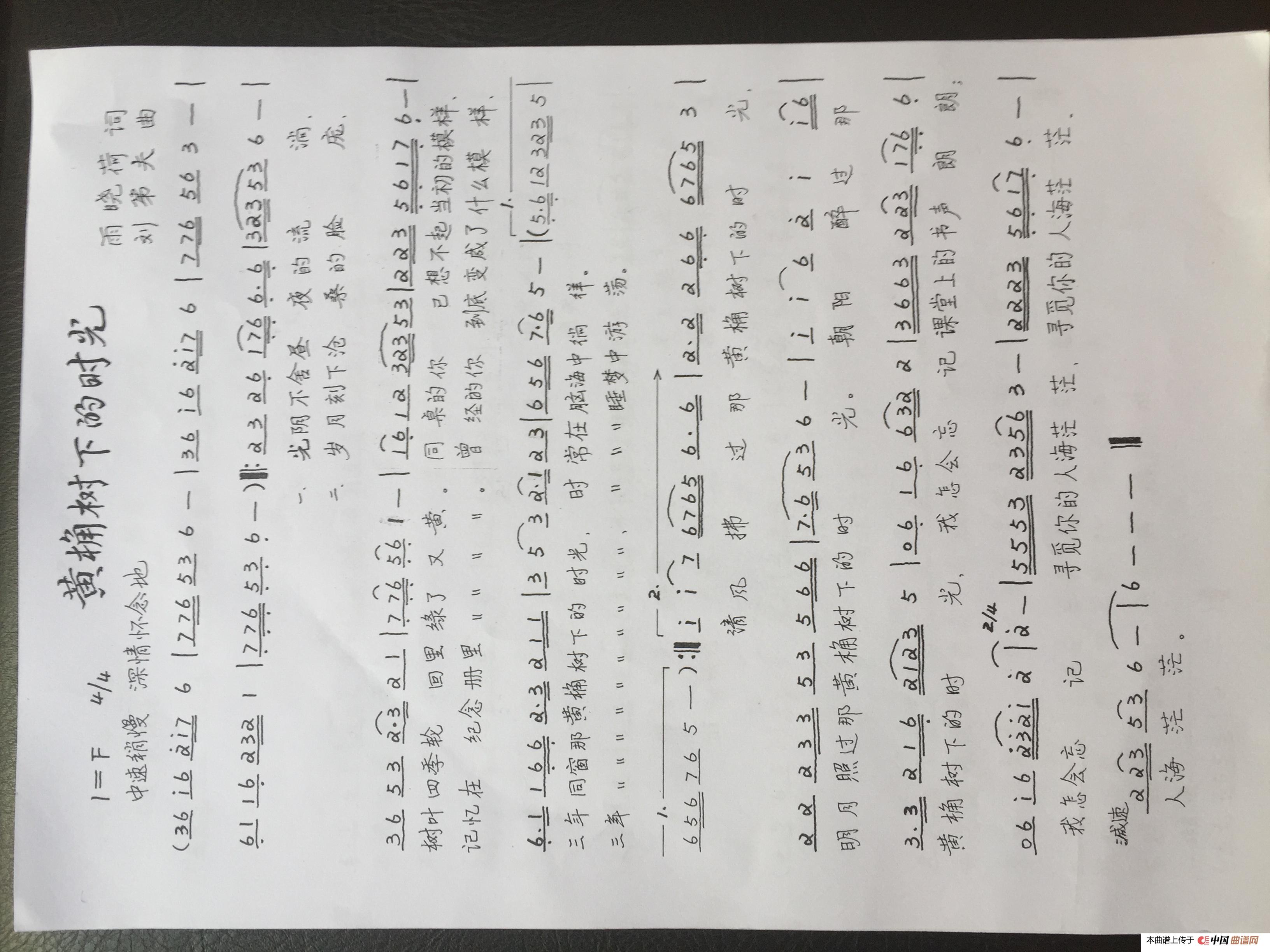 关于《黄桷树下的时光》曲谱的评论