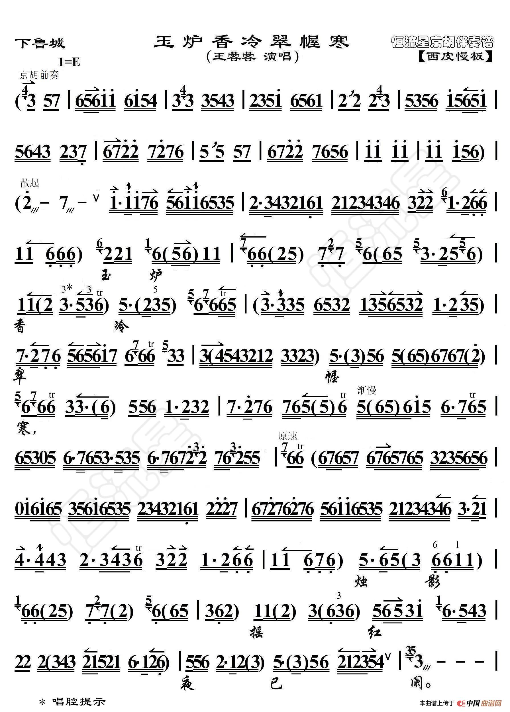 下鲁城·玉炉香冷翠幄寒(京胡伴奏谱)