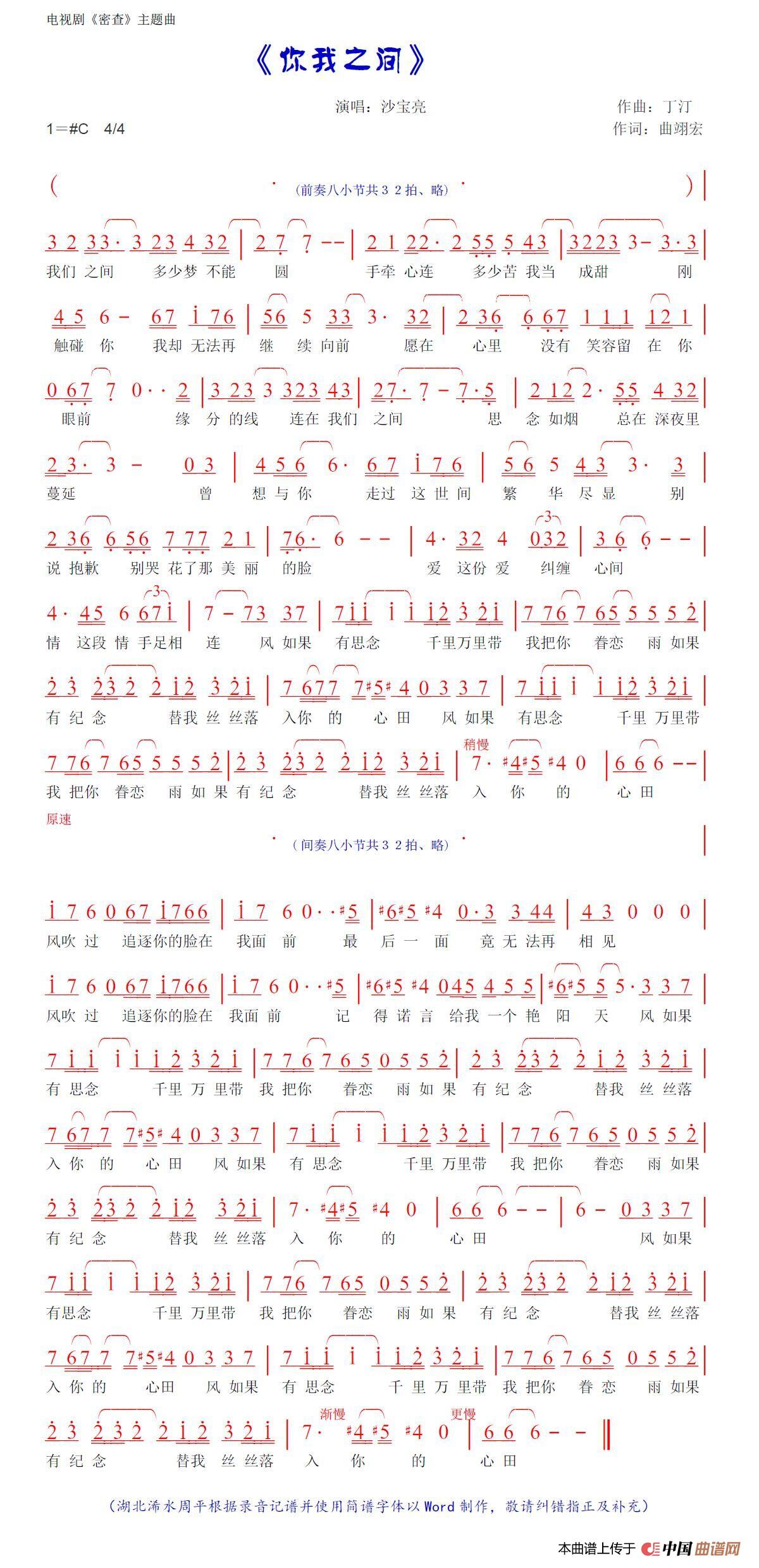 关于《电视剧《密查》片尾曲《你我之间》(沙宝亮演唱)简谱曲谱》曲谱的评论