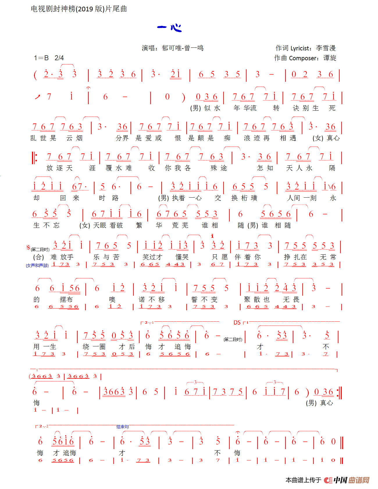 关于《电视剧封神榜(2019版)片尾曲《一心》简谱曲谱》曲谱的评论