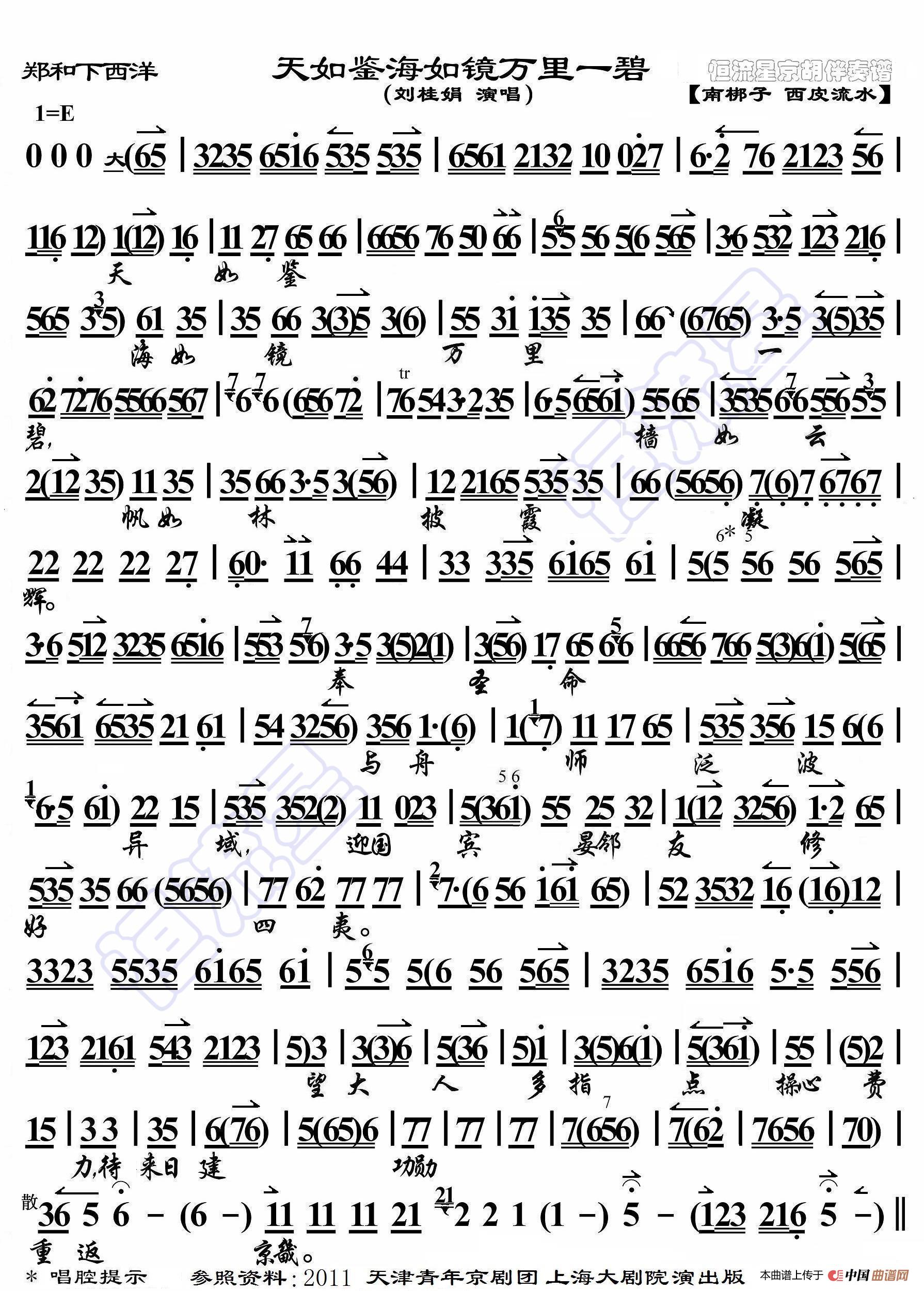 郑和下西洋·天如鉴海如镜万里一碧(京胡伴奏谱)