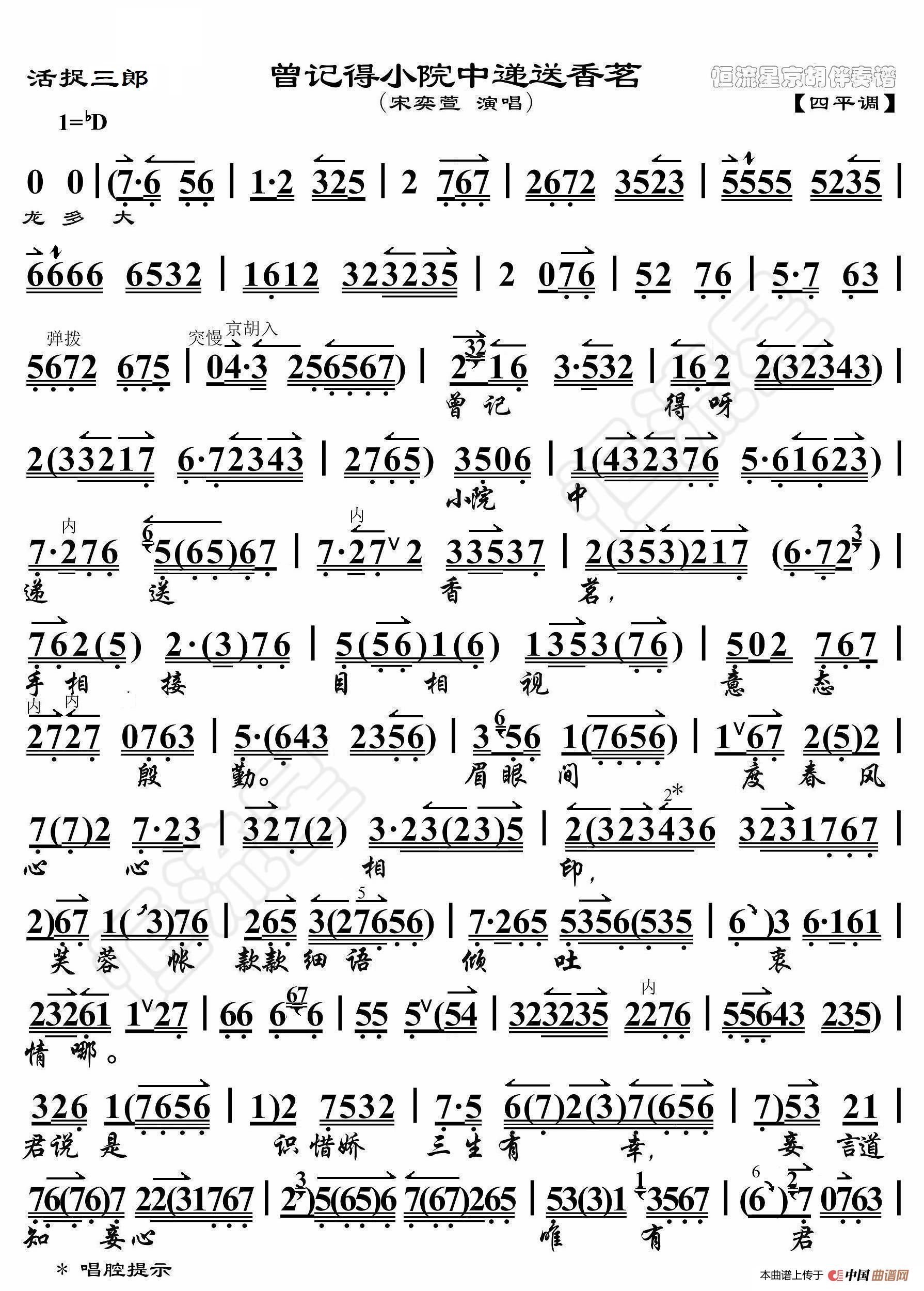 活捉三郎·曾记得小院中递送香茗(京胡伴奏谱)