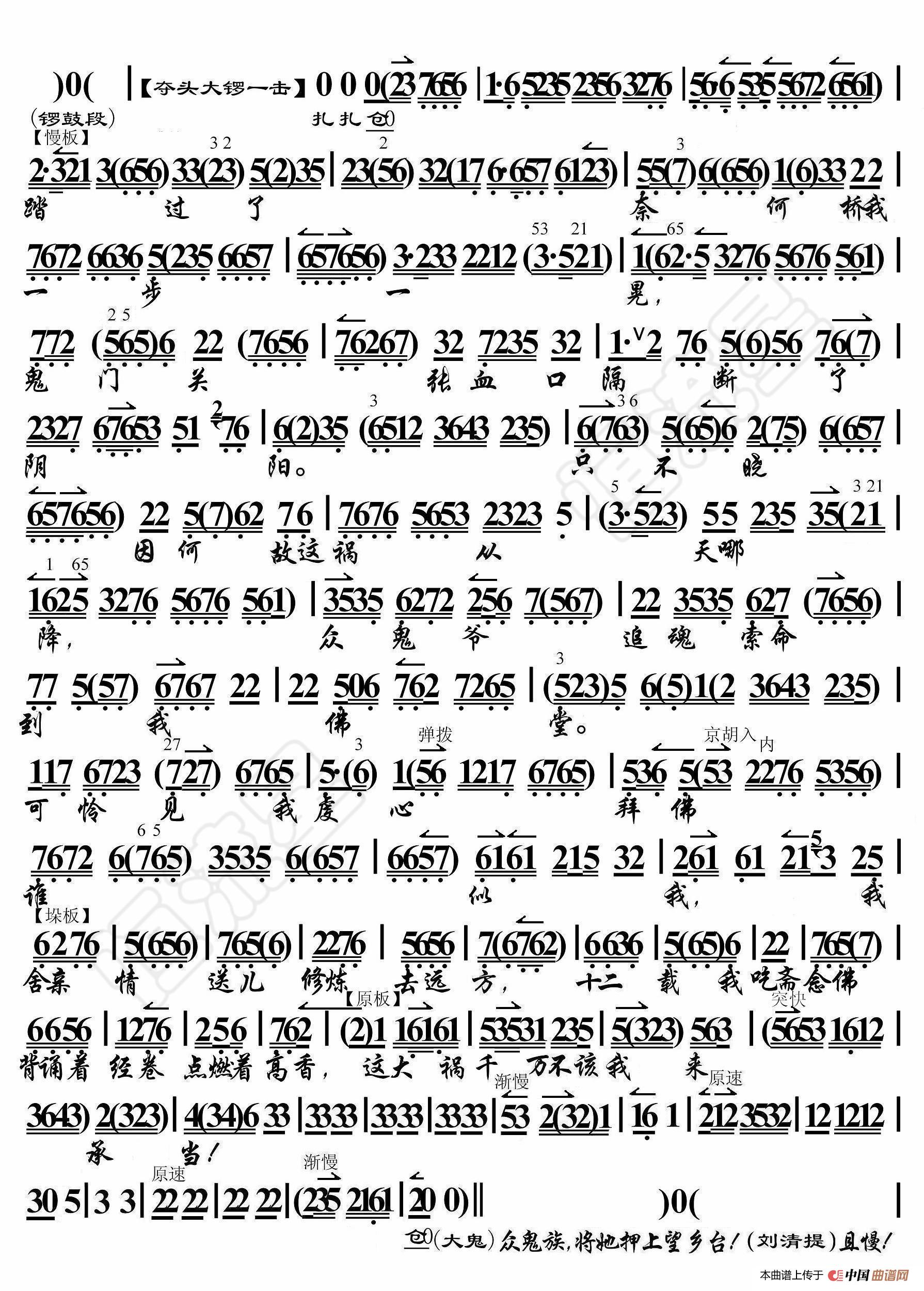 滑油山·黑暗暗雾沉沉黄泉路上(京胡伴奏谱)