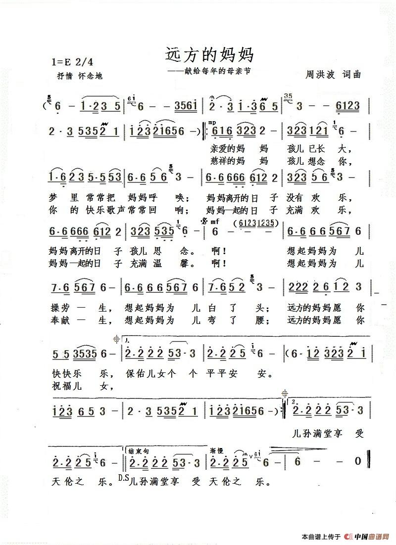 关于《远方的妈妈》曲谱的评论
