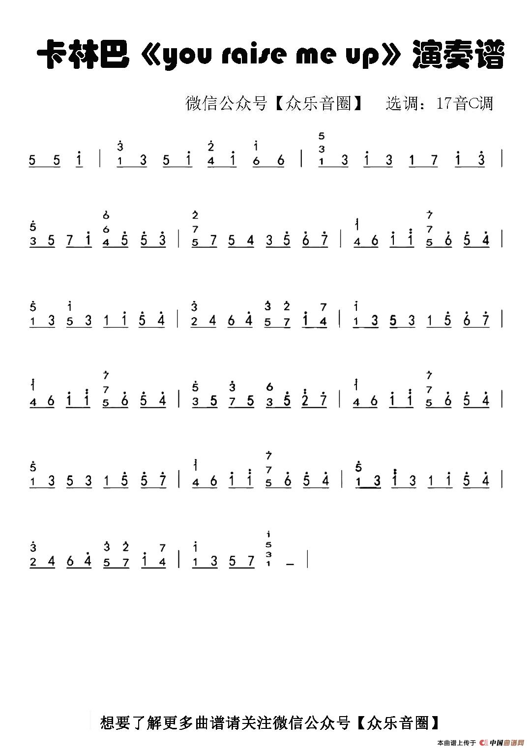you-raise-me-up(拇指琴卡林巴琴和弦简谱)