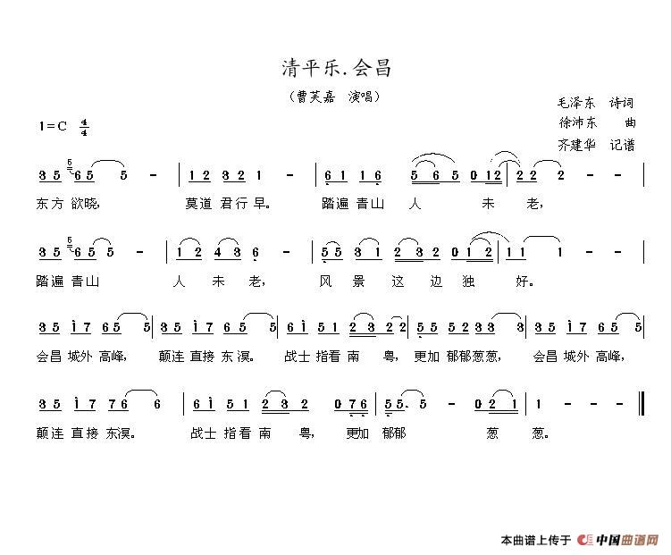 关于《清平乐.会昌》曲谱的评论
