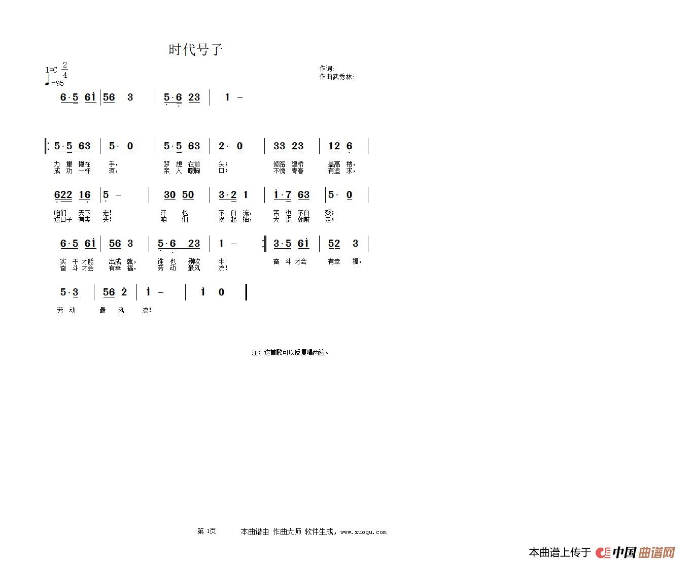 关于《时代号子》曲谱的评论