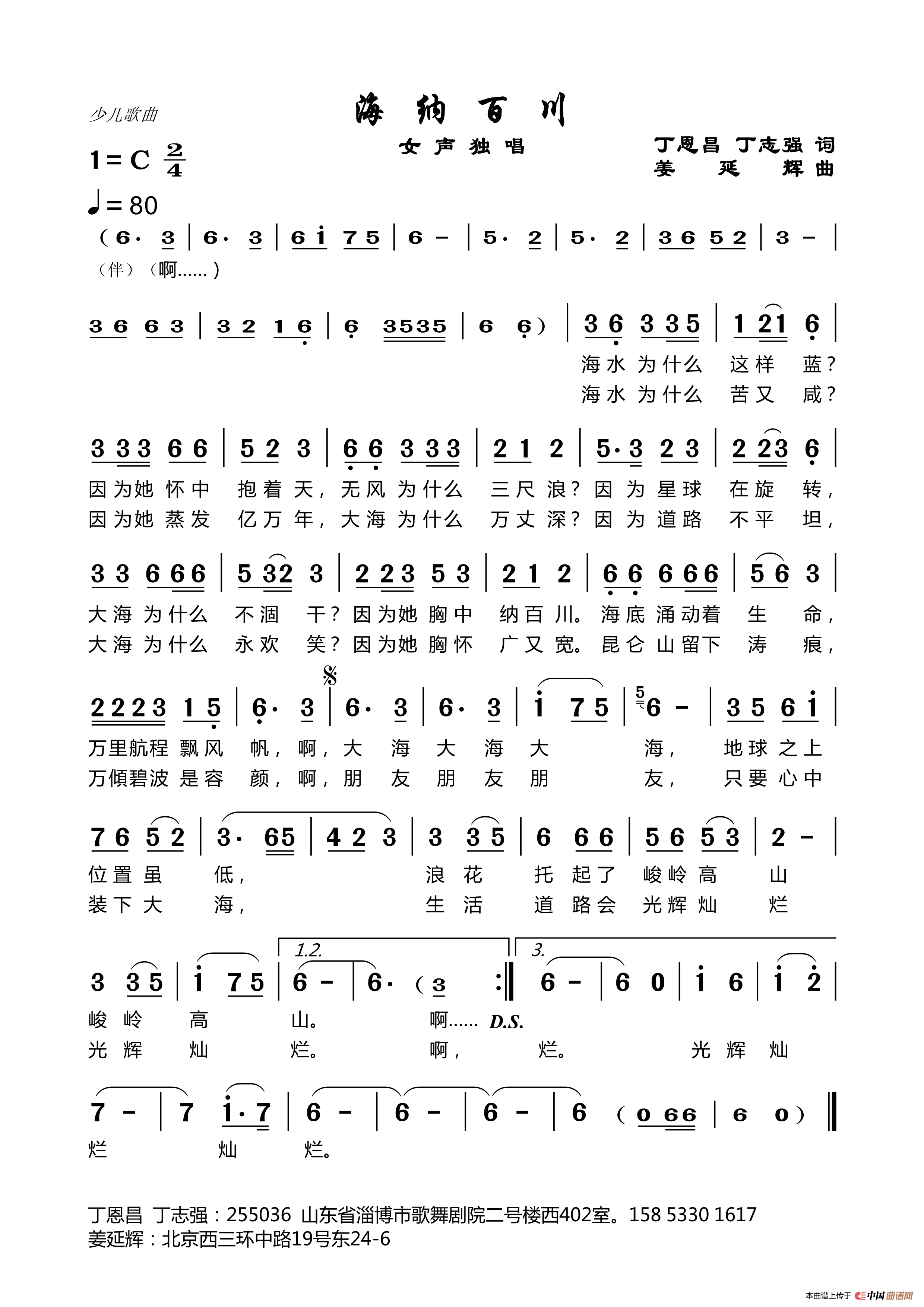当前位置: 首页 谱友园地 谱友上传 海纳百川(丁恩昌词延辉曲)