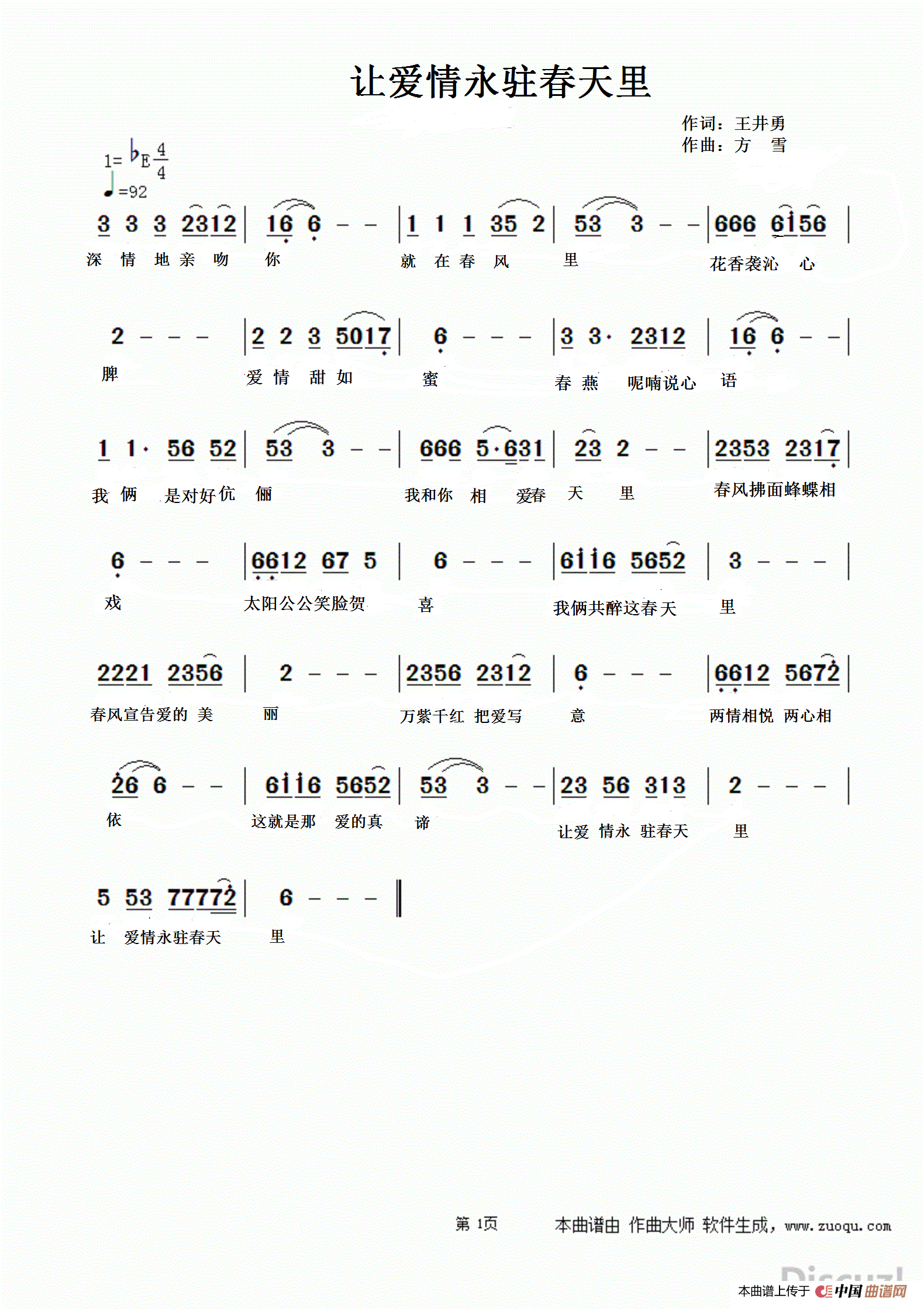 提示:在曲谱图片上单击右键,选择“图片另存为...”即可将曲谱保存到您的电脑中,打印时候可将图片插入到WORD中,调整合适大小打印即可。