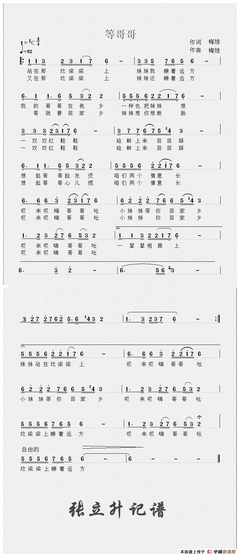 关于《陕北民歌等哥哥》曲谱的评论