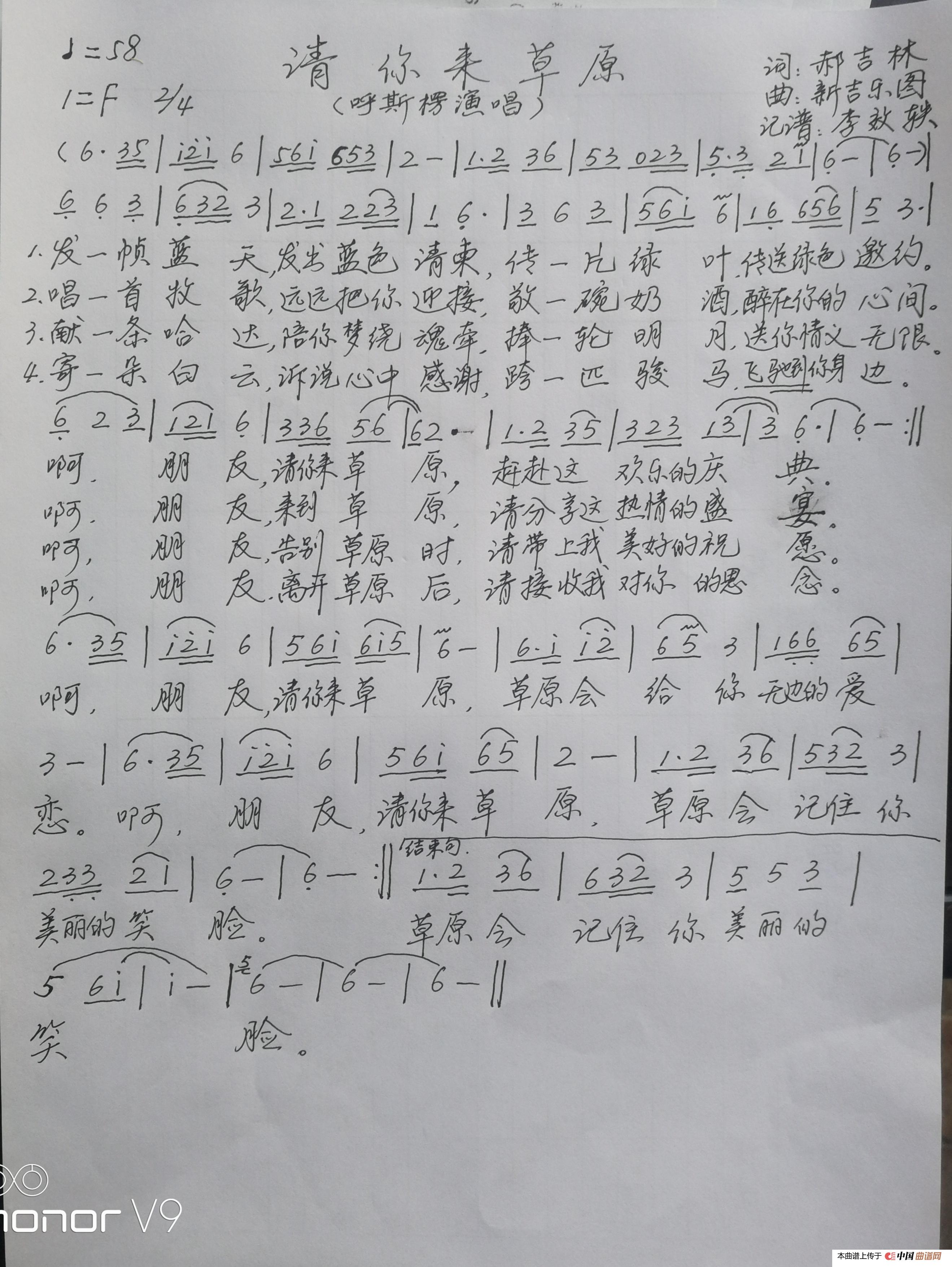 关于《请你来草原》曲谱的评论