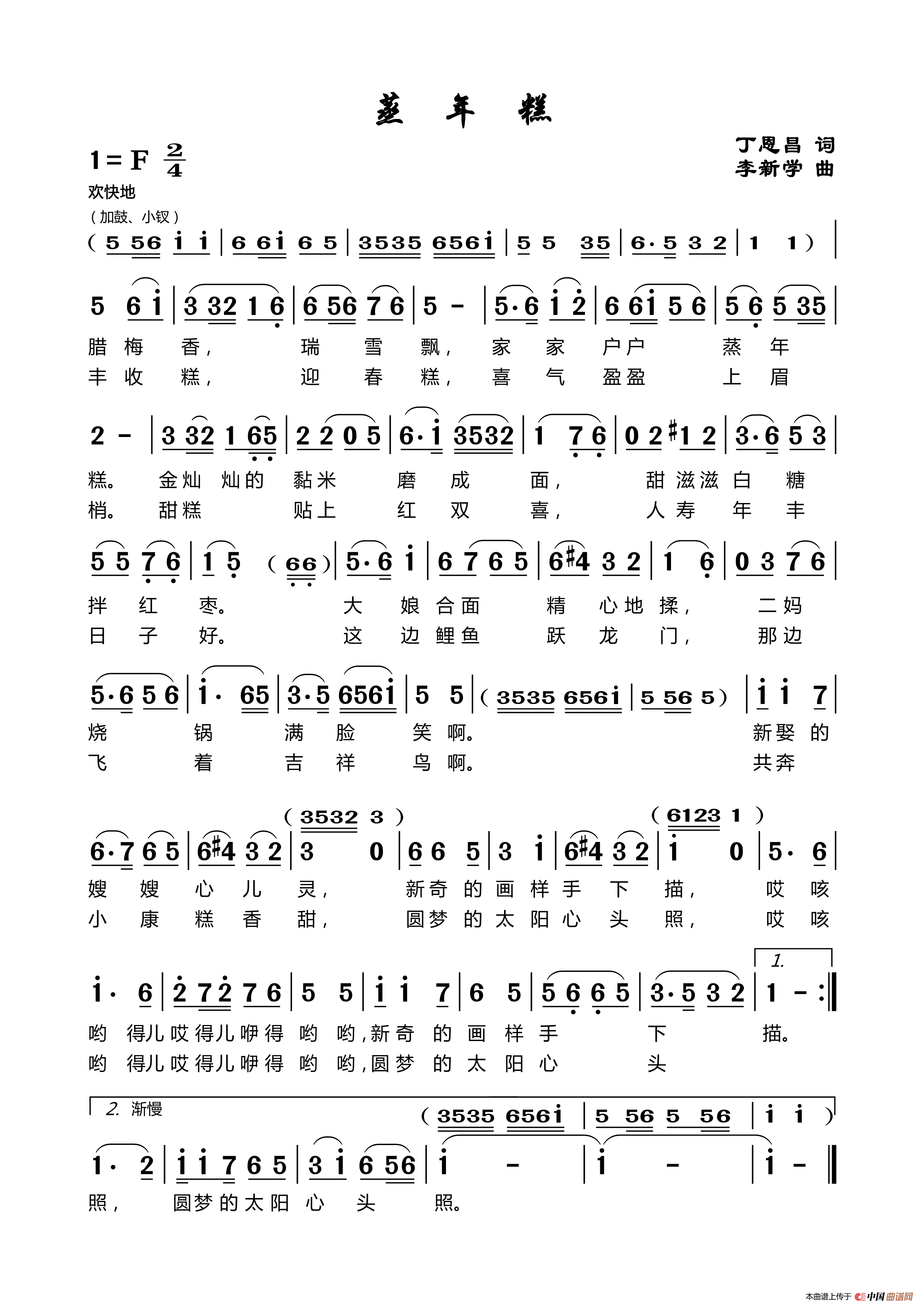 关于《蒸年糕》曲谱的评论