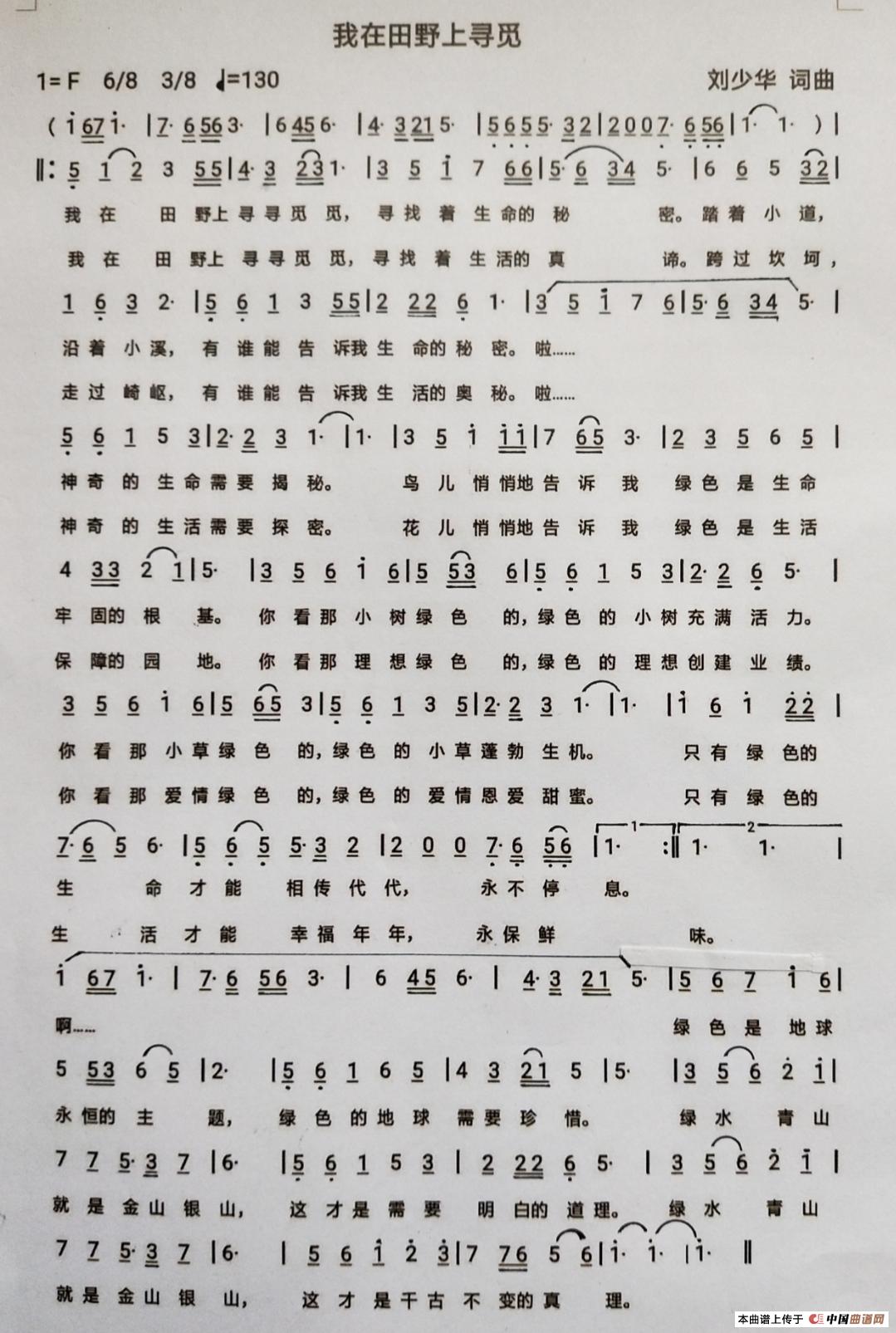 关于《我在田野上寻觅》曲谱的评论
