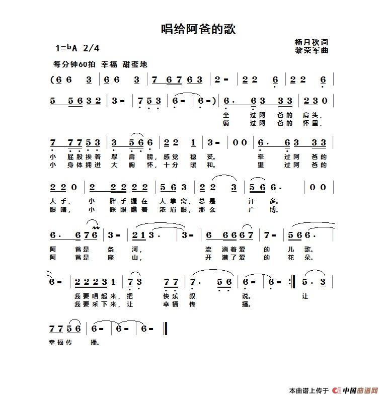 关于《唱给阿爸的歌》曲谱的评论