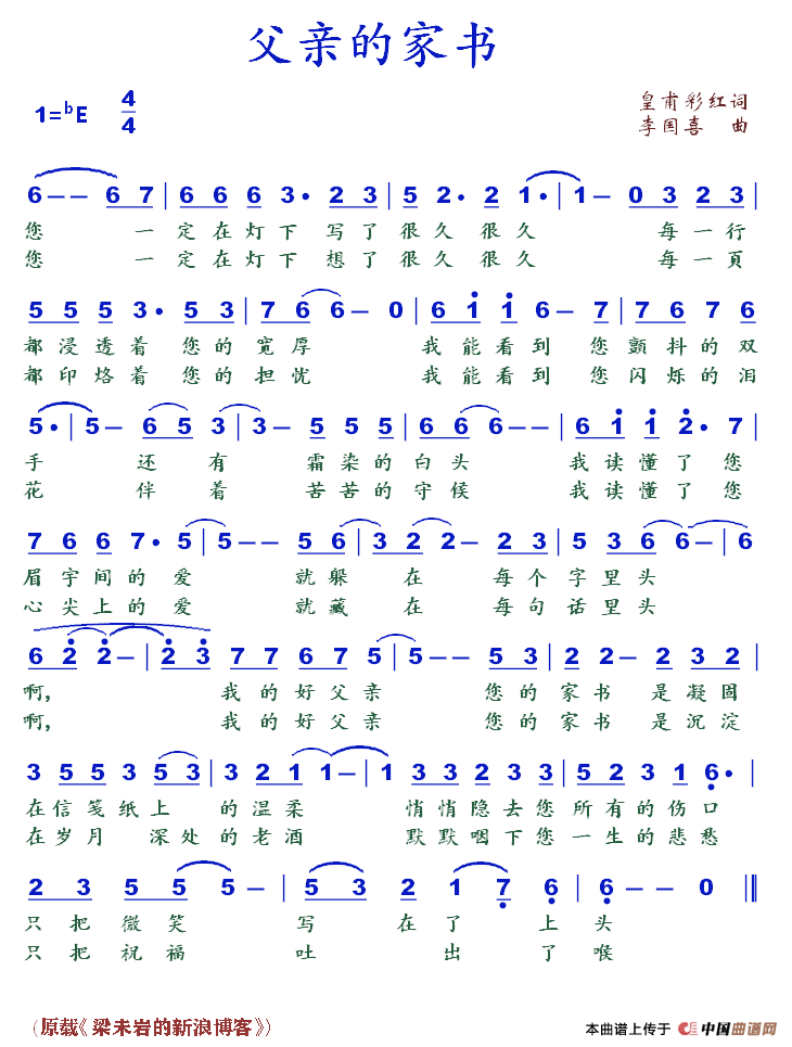 关于《父亲的家书》曲谱的评论