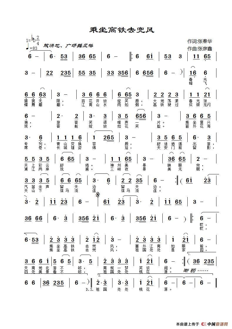 关于《乘坐高铁去兜风》曲谱的评论