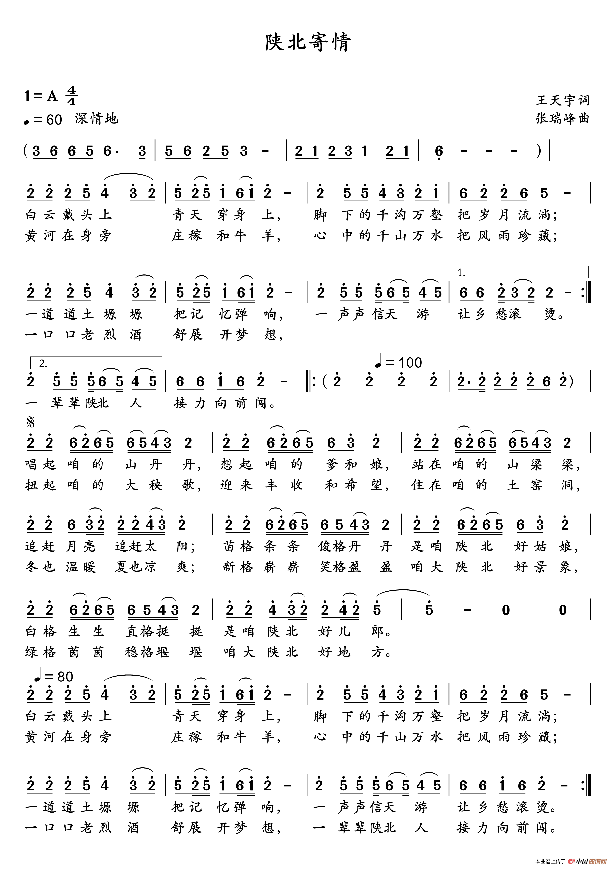 关于《陕北寄情》曲谱的评论