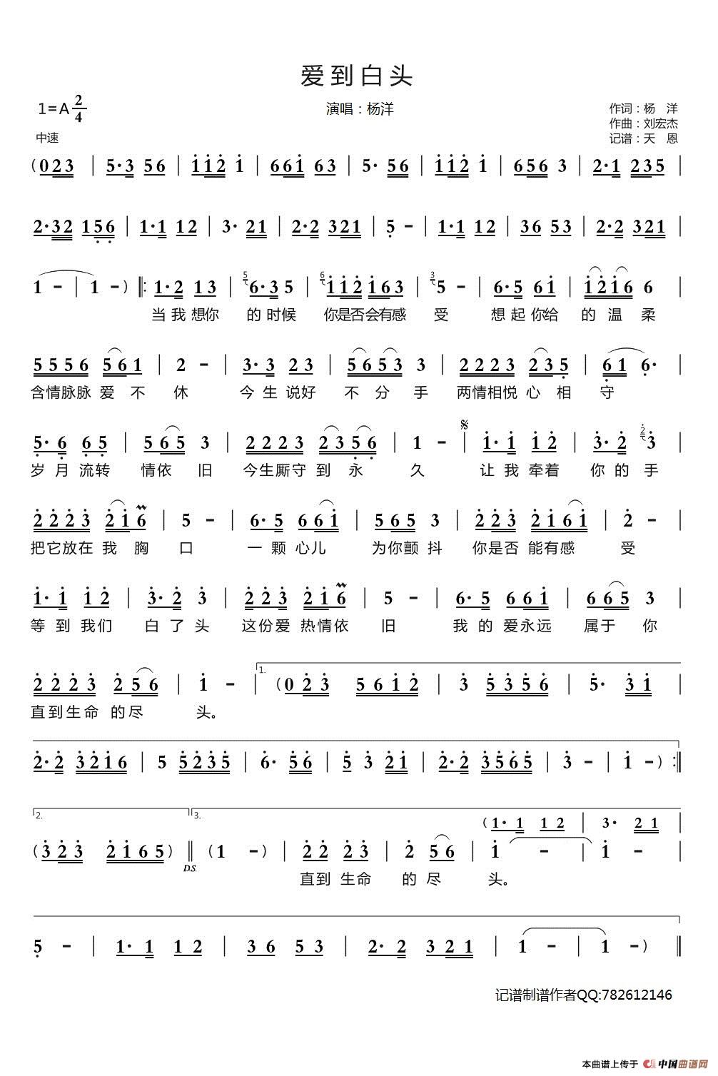 关于《爱到白头》曲谱的评论