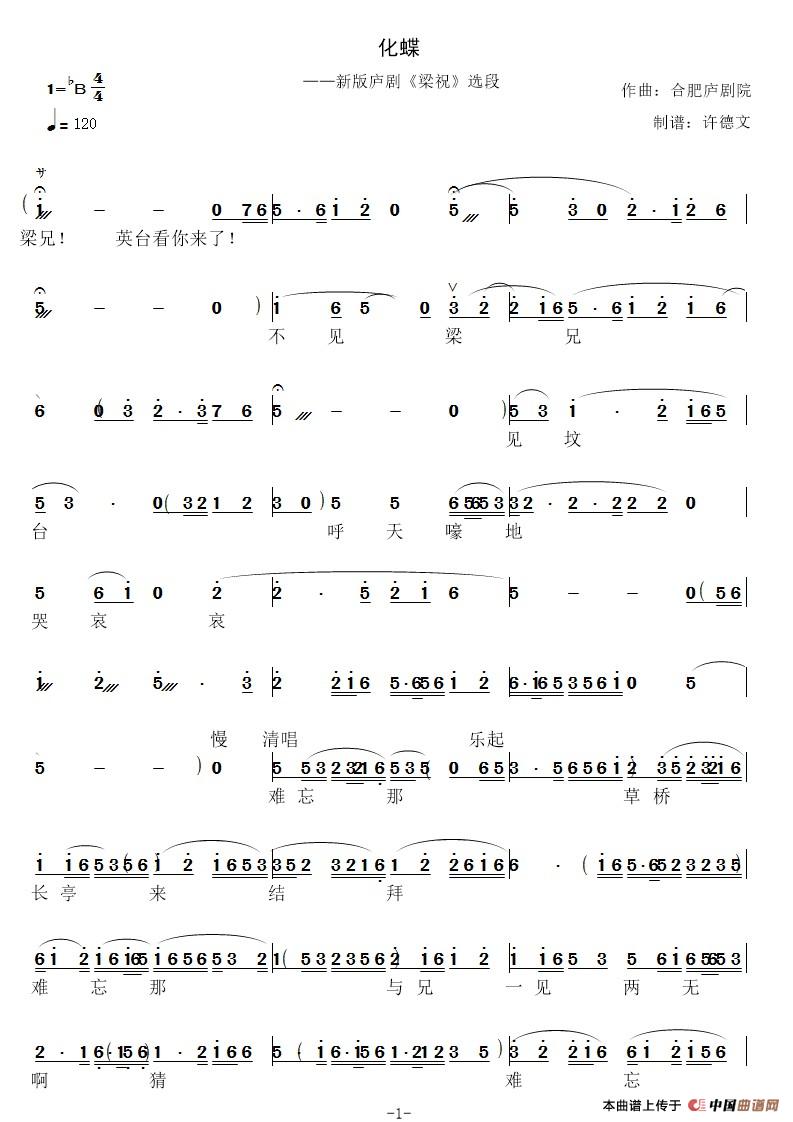 关于《庐剧-化蝶》曲谱的评论