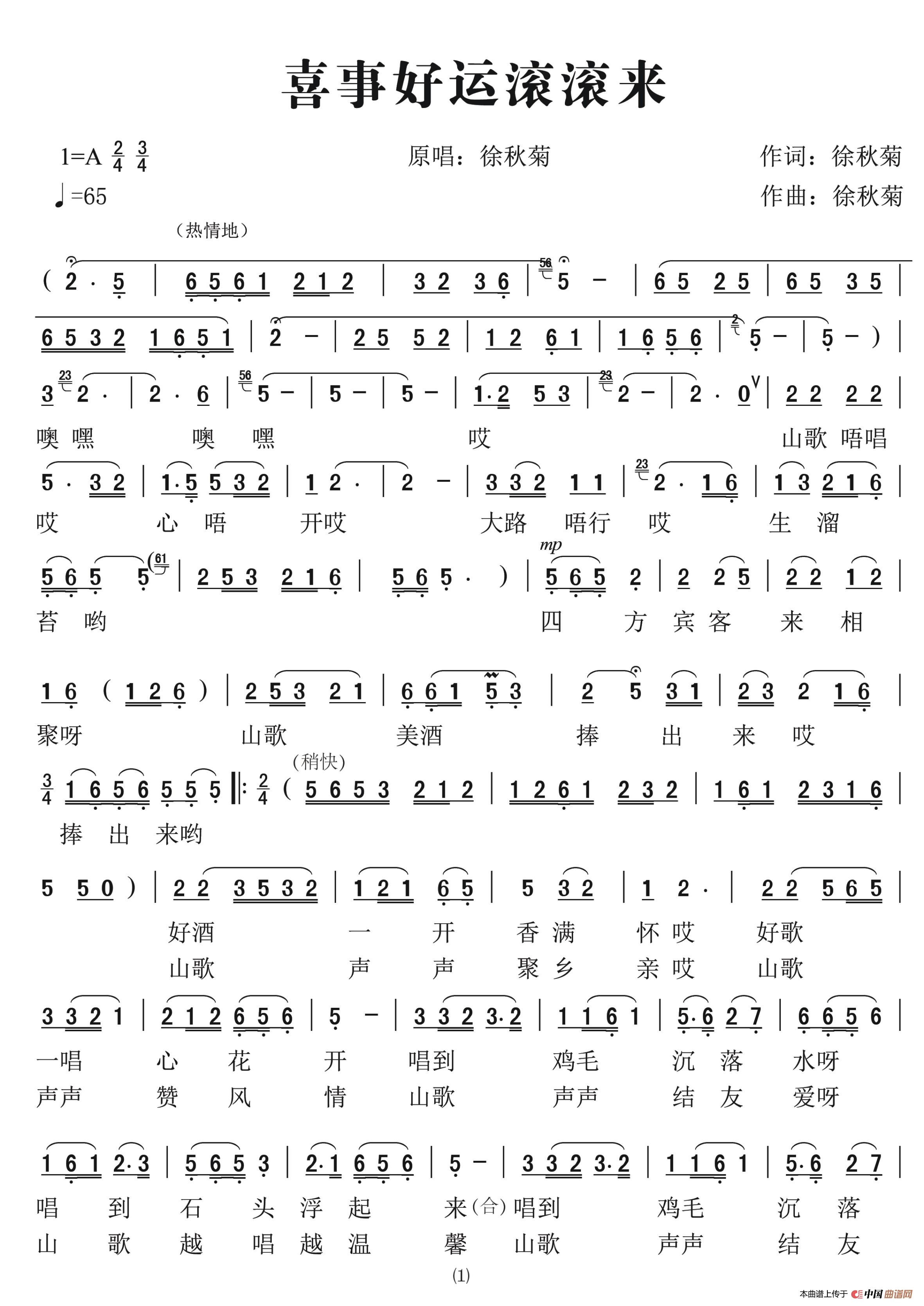 关于《喜事好运滚滚来》曲谱的评论