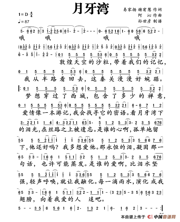 关于《月牙湾》曲谱的评论