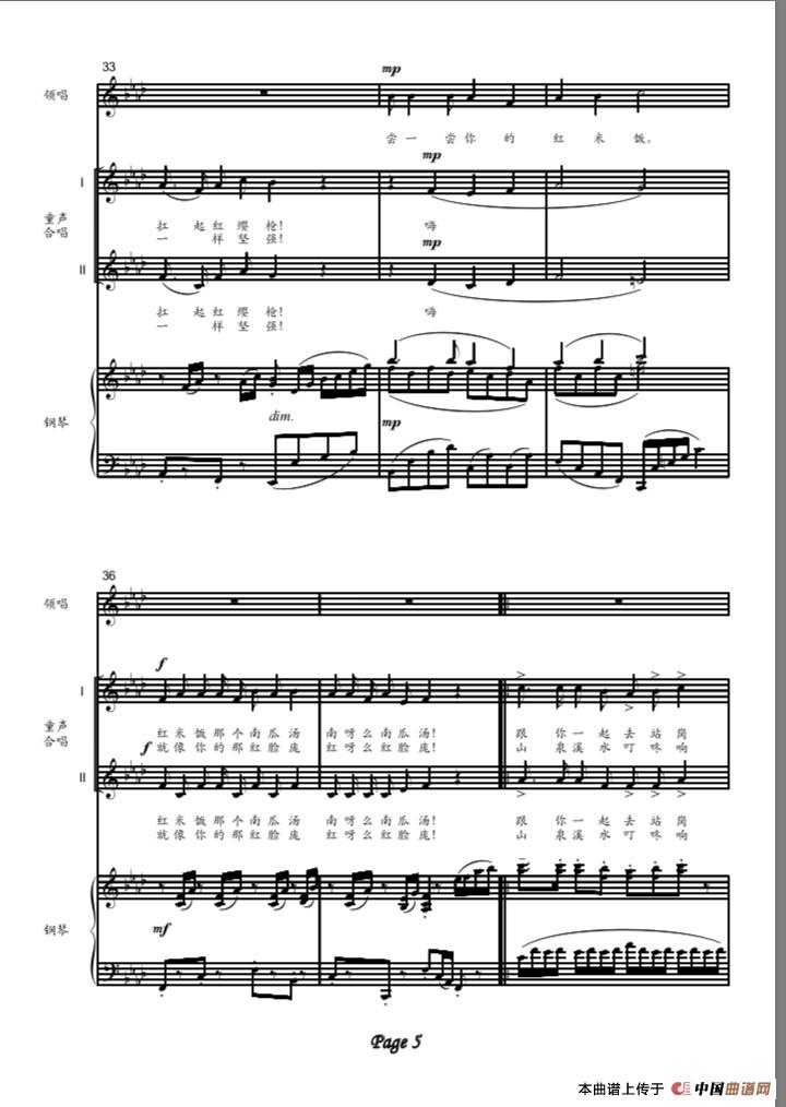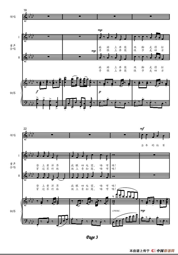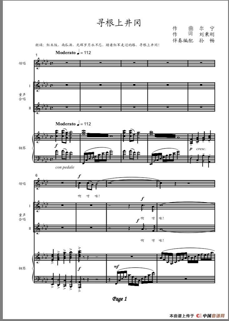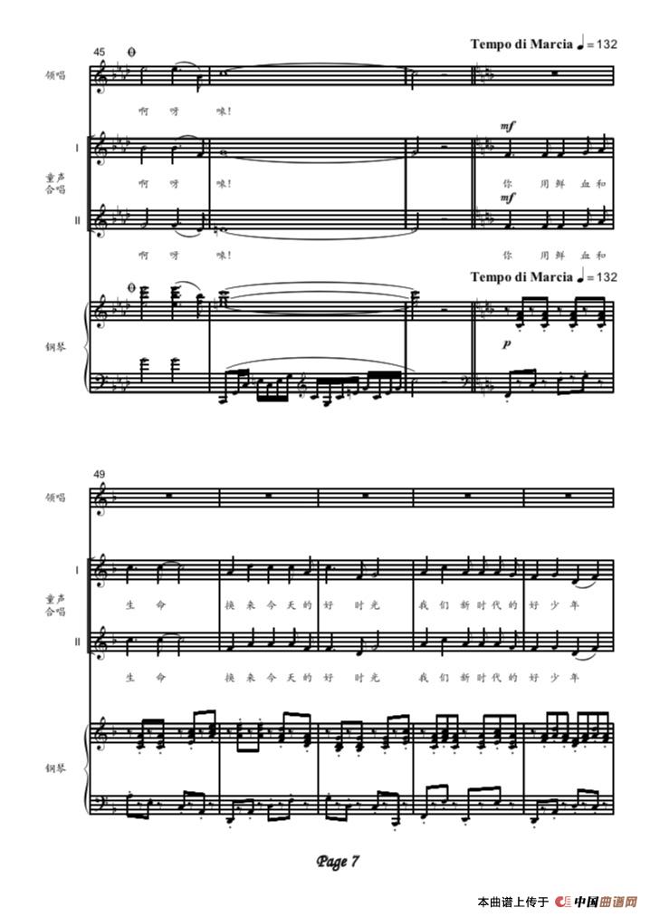 本人是该歌曲作者,近几年该歌在各地传唱较广,受孩子们喜欢,为方便排练上传带钢伴的曲谱[回复] [回复]