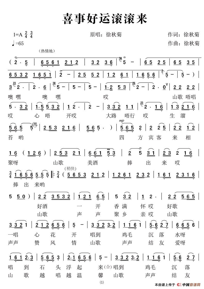秋菊老师,这首歌谱中间的过门与你的原唱有点不符,是不是经过改动变成这样的? [回复]
