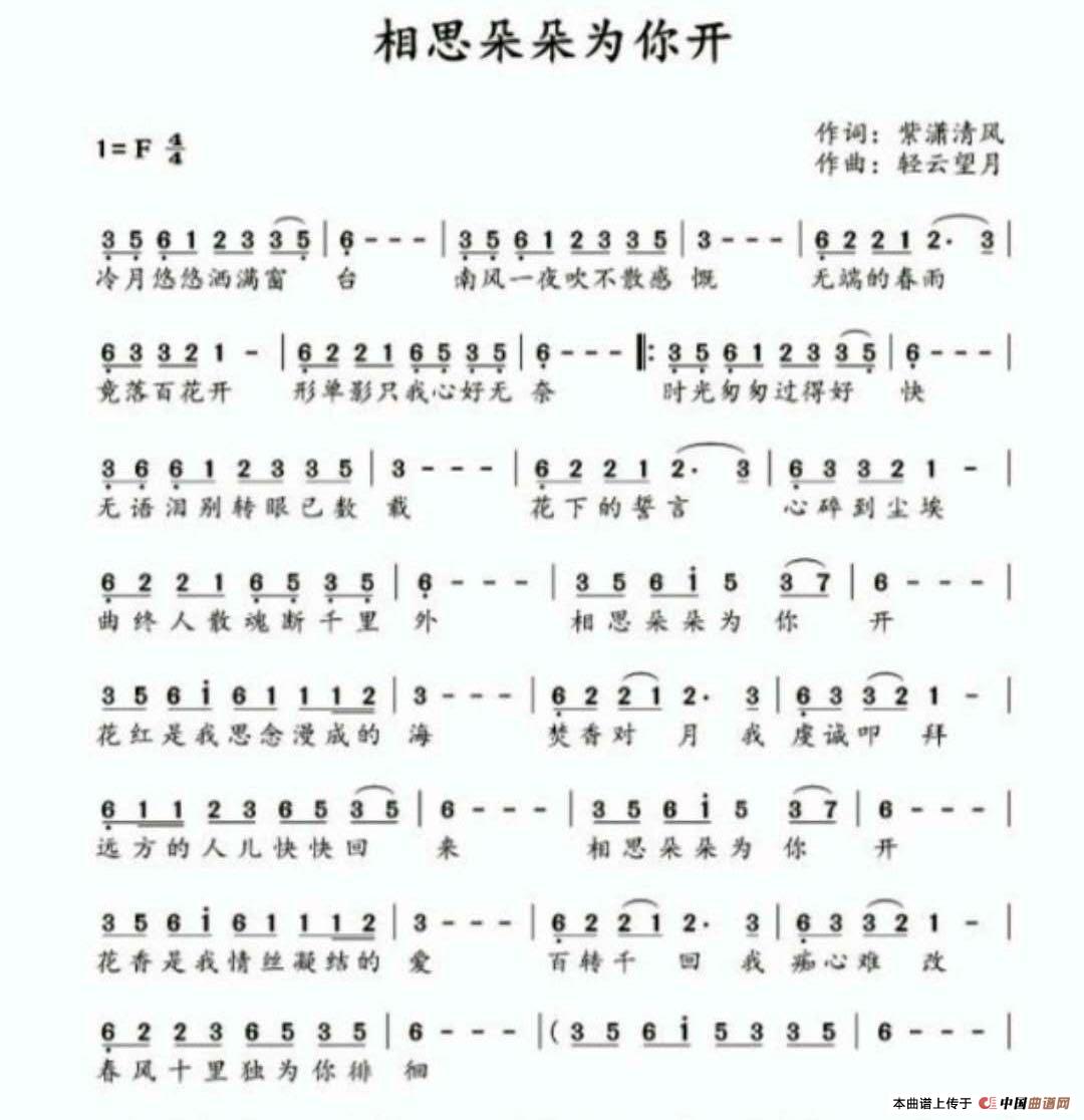 关于《相思朵朵为你开》曲谱的评论