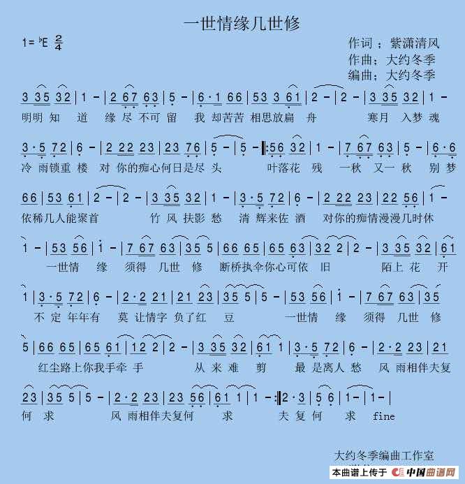 关于《一世情缘几世修》曲谱的评论