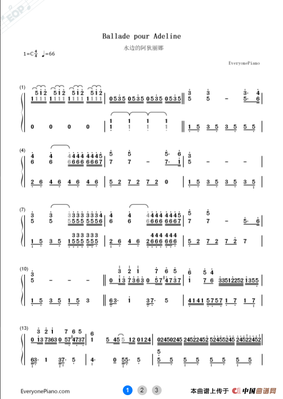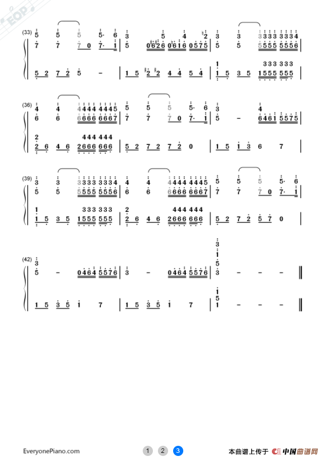 提示:在曲谱图片上单击右键,选择“图片另存为...”即可将曲谱保存到您的电脑中,打印时候可将图片插入到WORD中,调整合适大小打印即可。