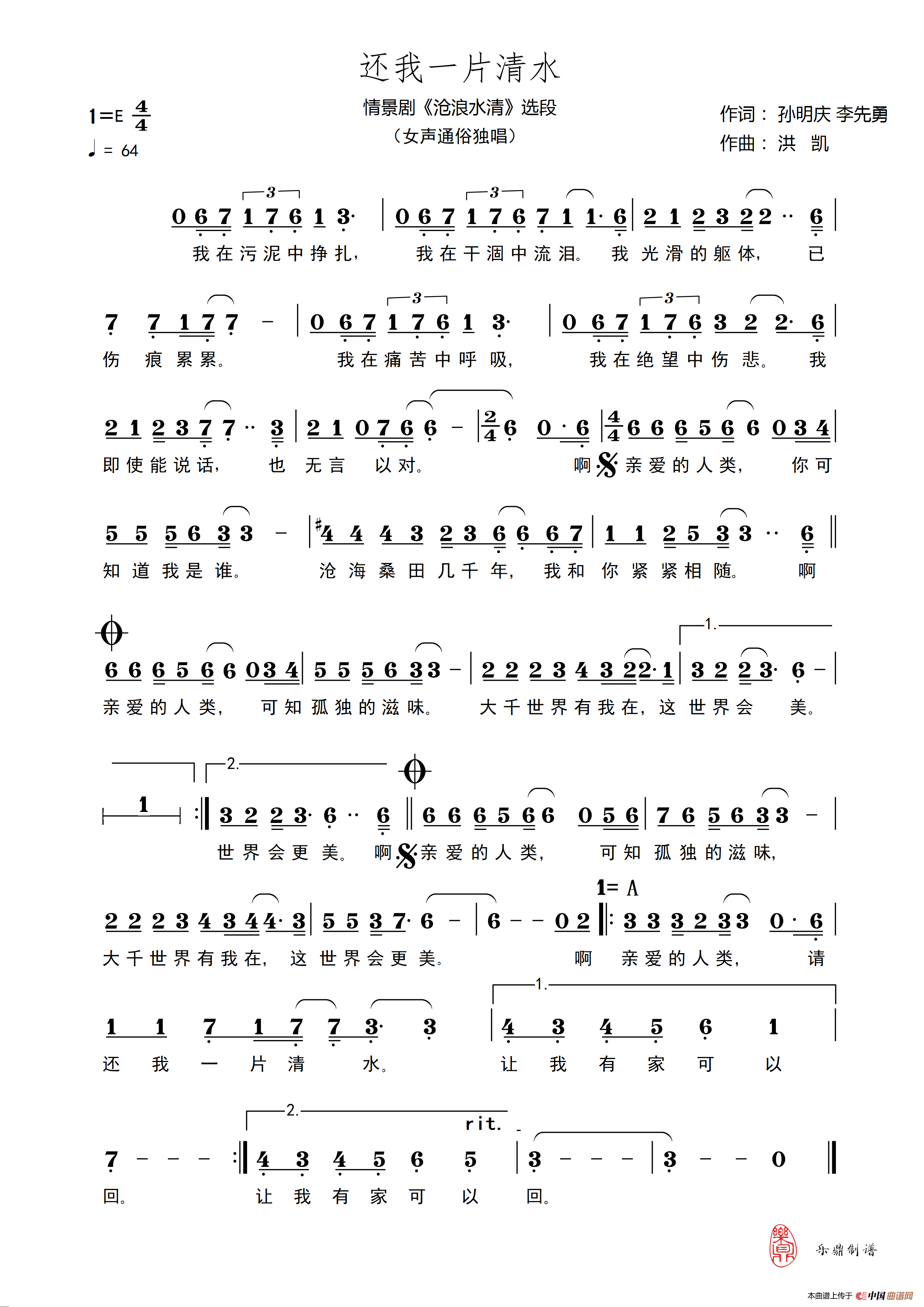 提示:在曲谱图片上单击右键,选择“图片另存为...”即可将曲谱保存到您的电脑中,打印时候可将图片插入到WORD中,调整合适大小打印即可。