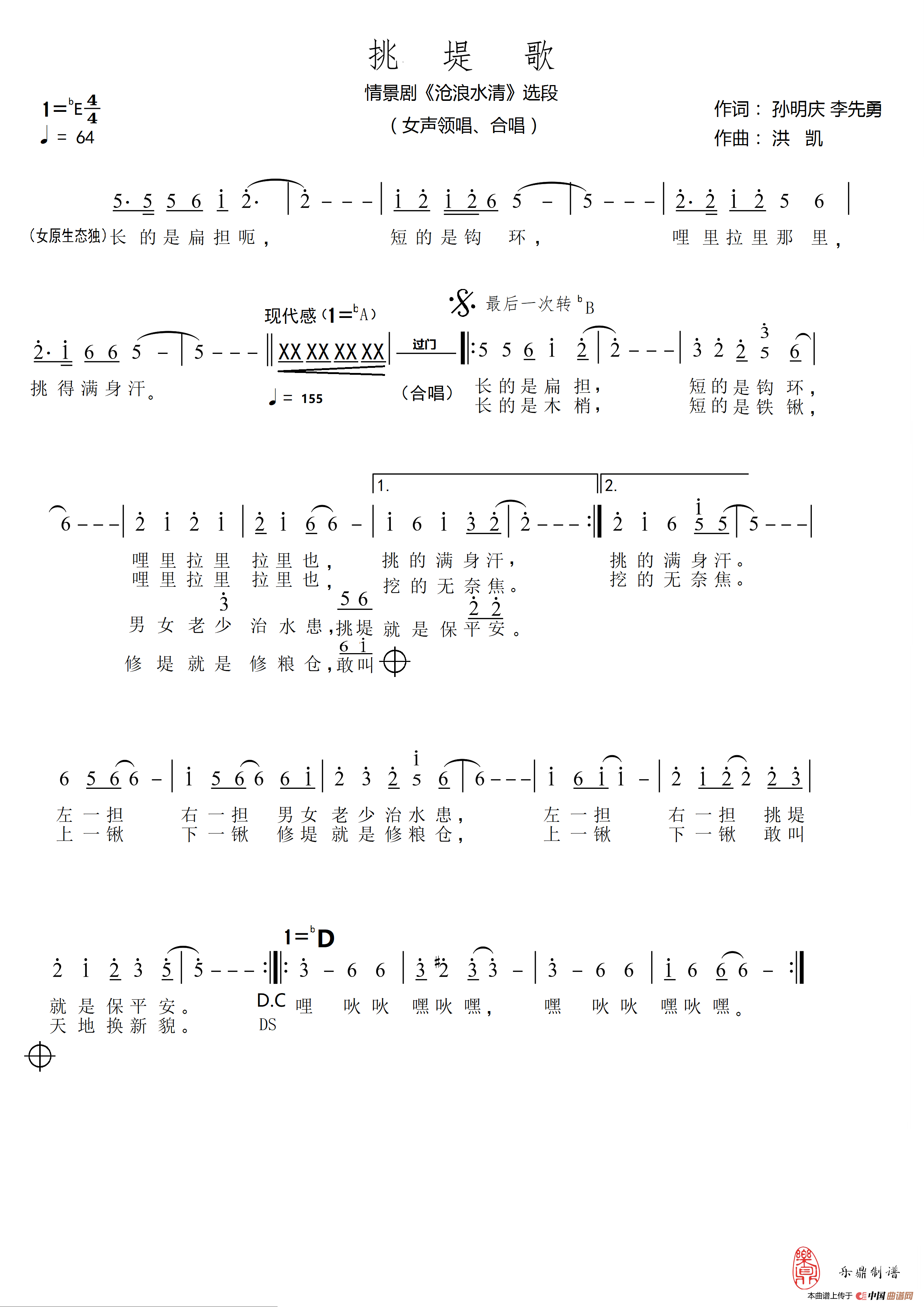 关于《挑堤歌》曲谱的评论