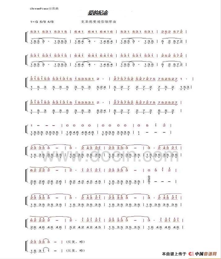 爱的纪念(简谱)