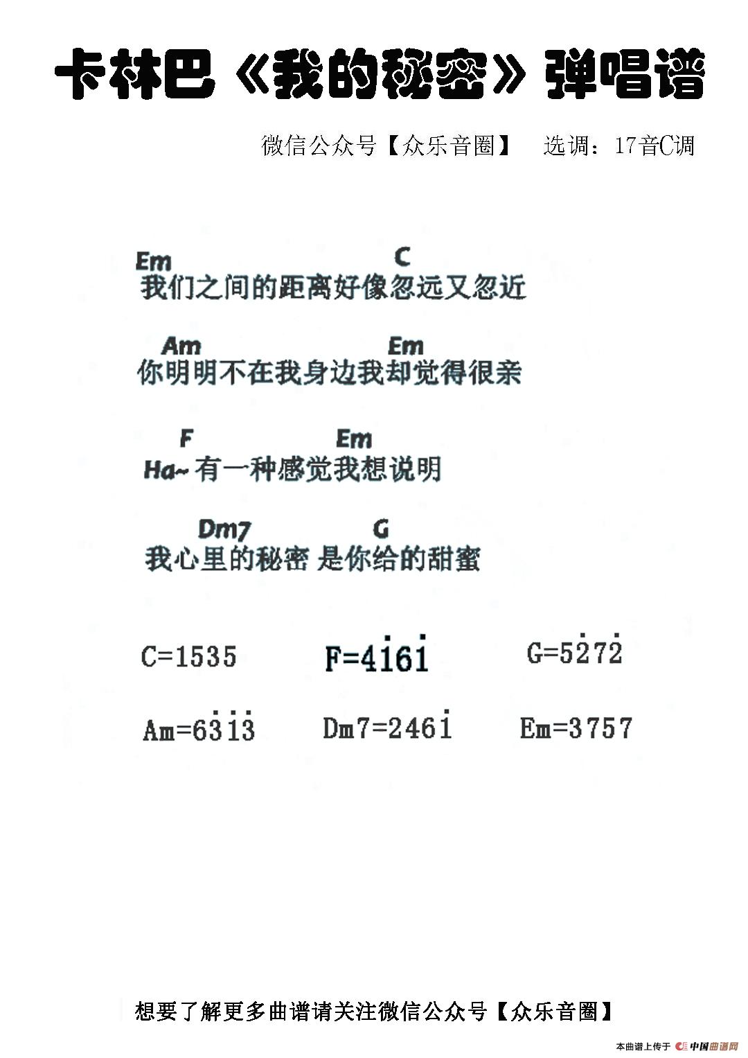 我的秘密(拇指琴卡林巴琴弹唱谱)