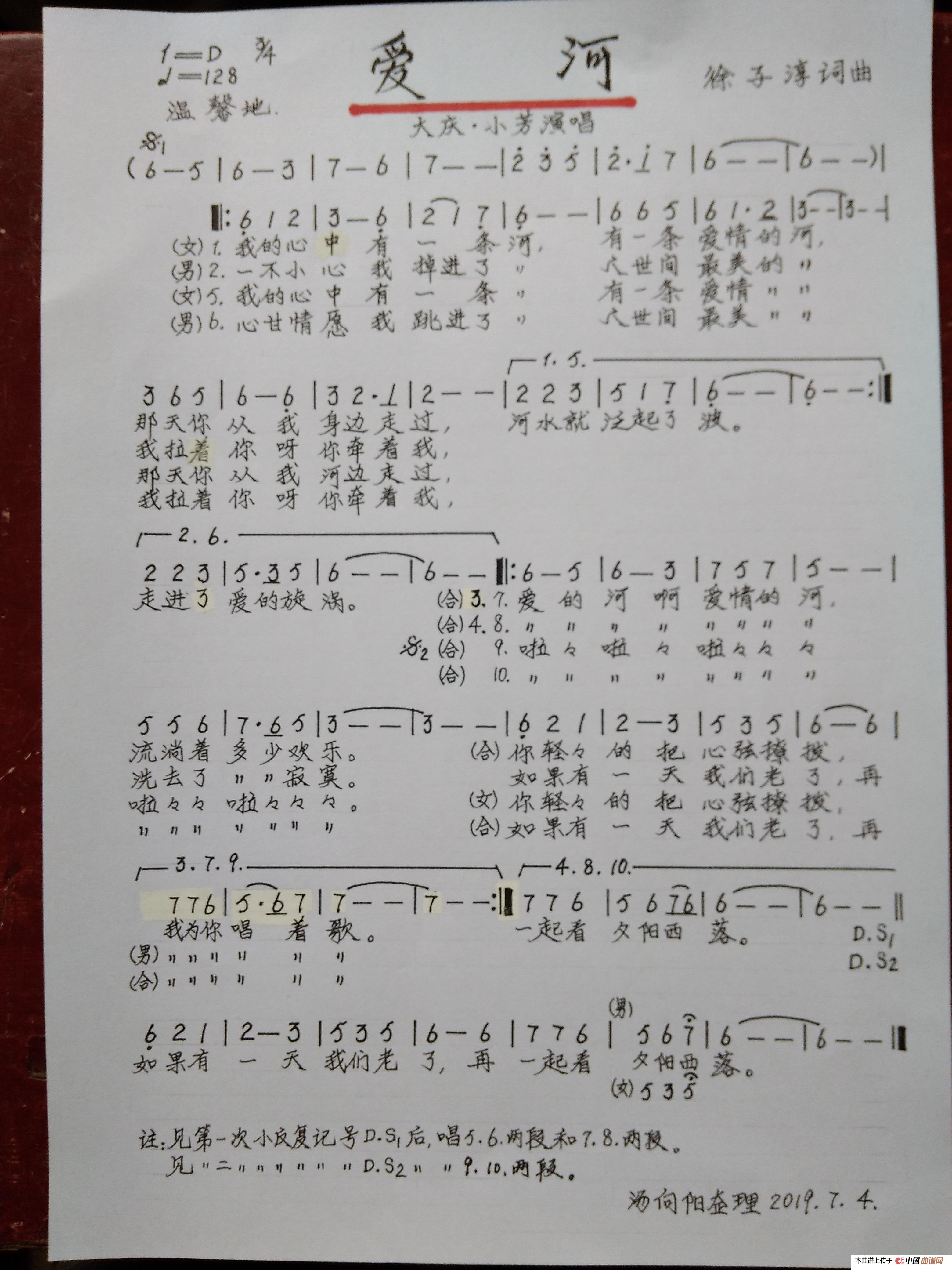 关于《爱河》曲谱的评论