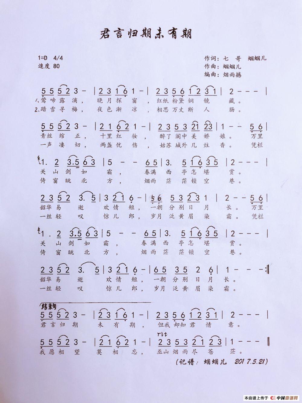 关于《君言归期未有期》曲谱的评论