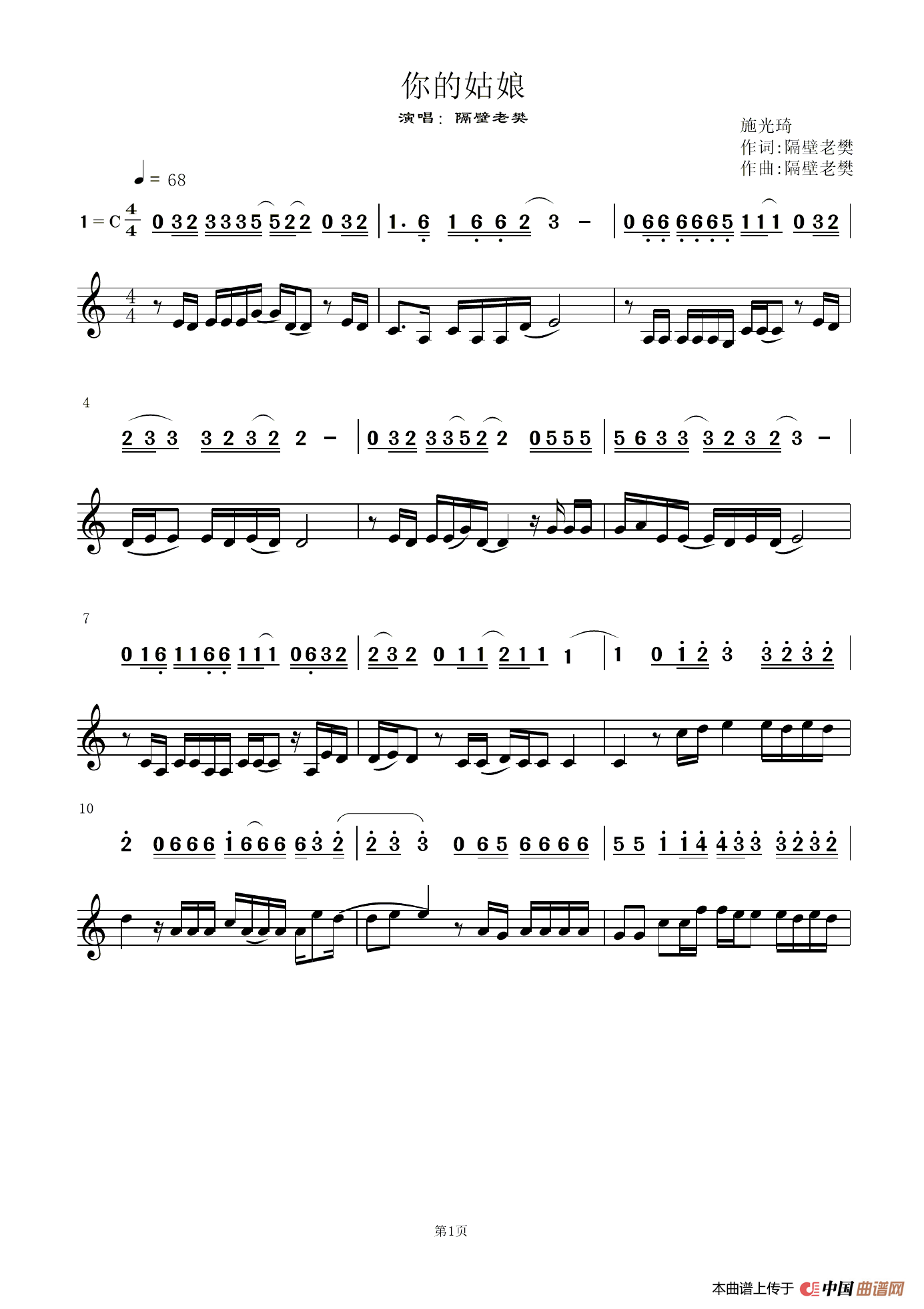 关于《你的姑娘》曲谱的评论