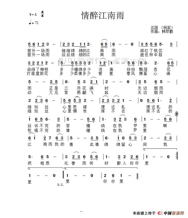 关于《情醉江南雨》曲谱的评论