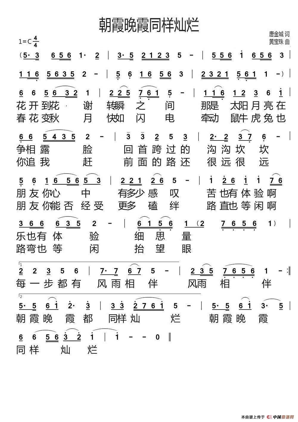 关于《朝霞晚霞同样灿烂》曲谱的评论