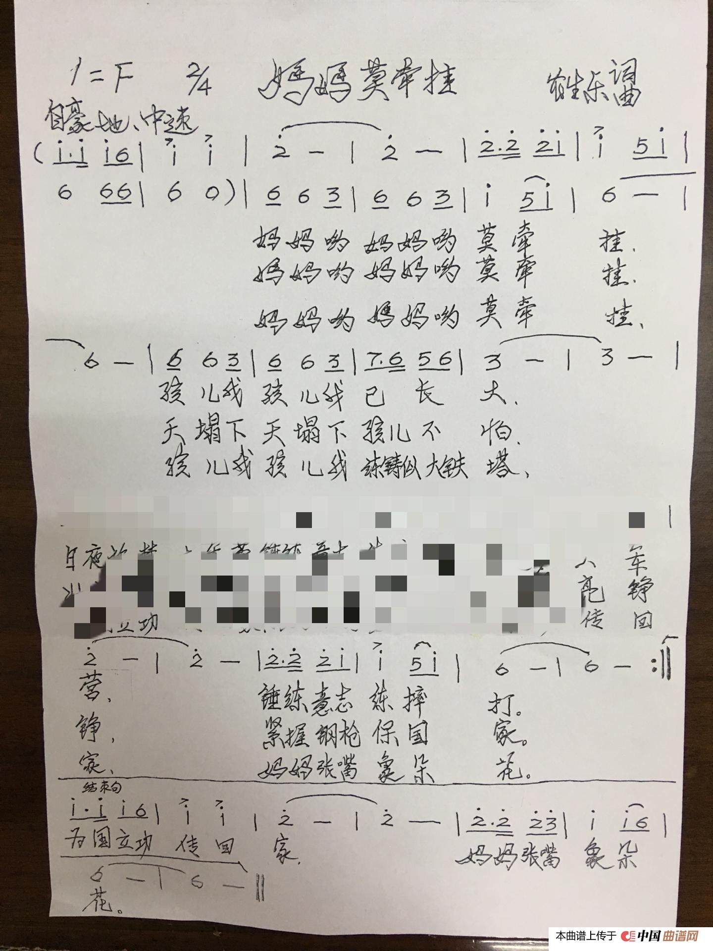 关于《妈妈莫牵挂》曲谱的评论