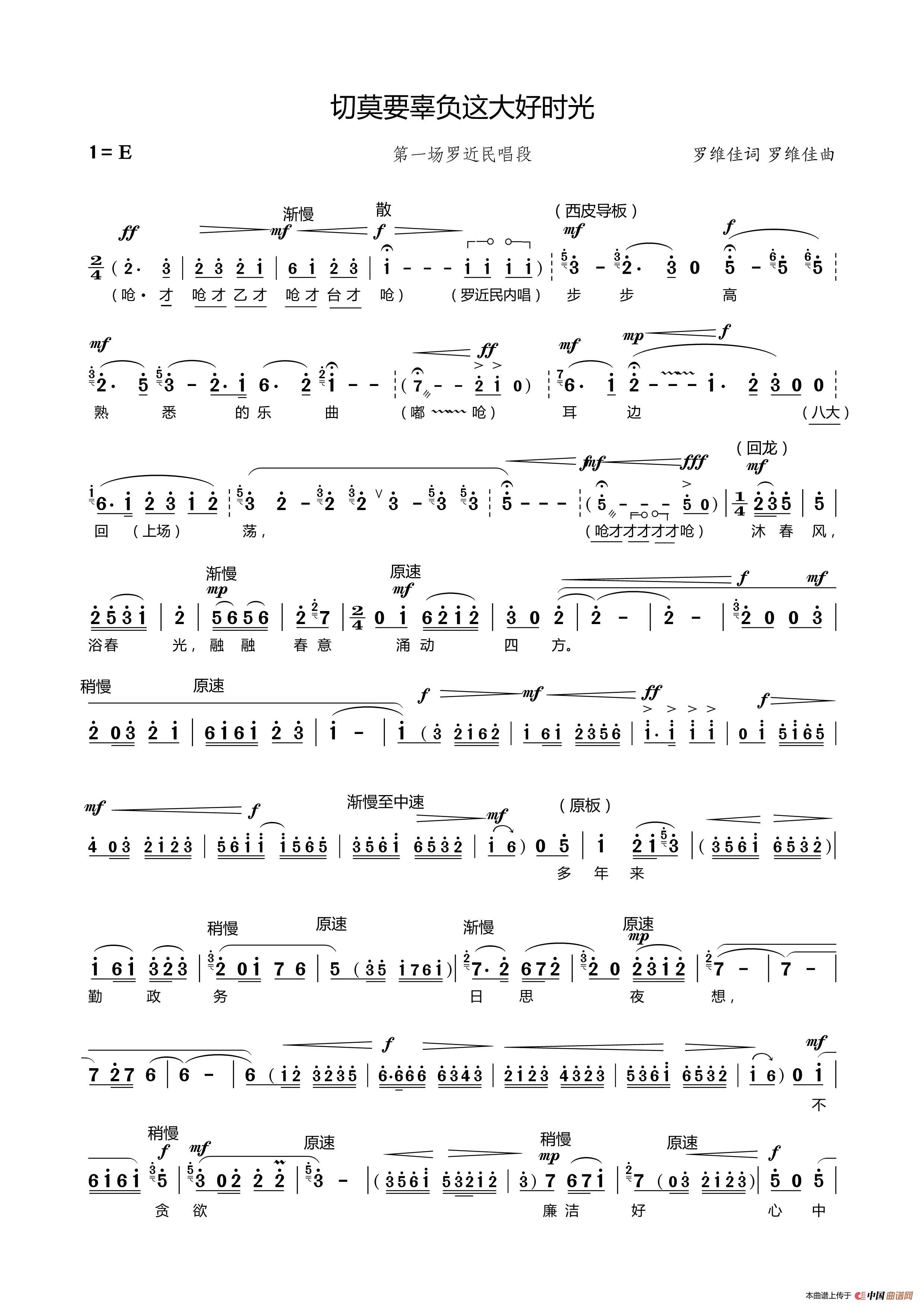 关于《切莫要辜负这大好时光》曲谱的评论