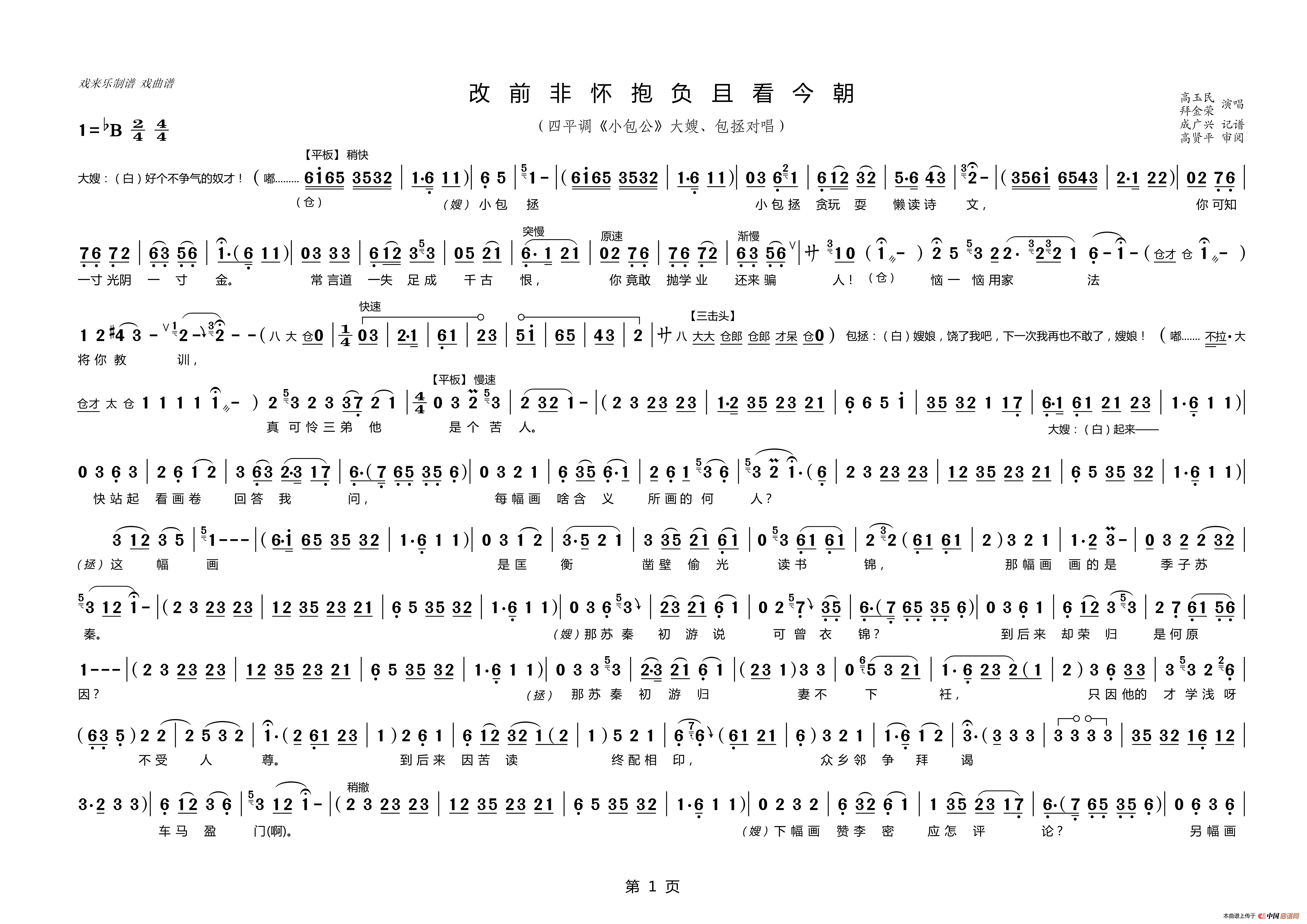 关于《改前非怀抱负且看今朝》曲谱的评论