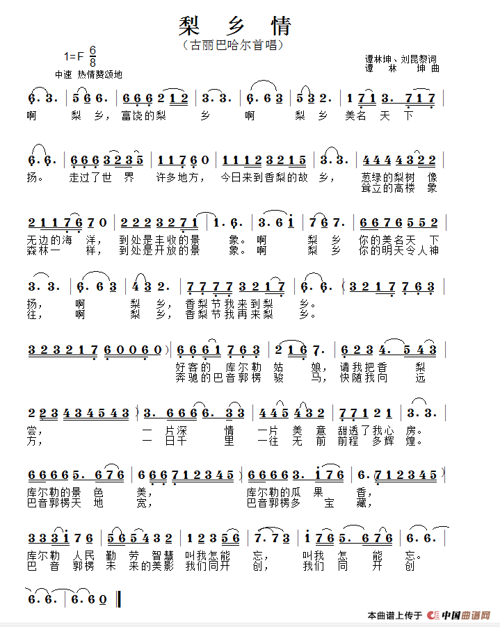 歌词由本人原创。刘昆黎帮助修改。关于《梨乡情》曲谱的评论